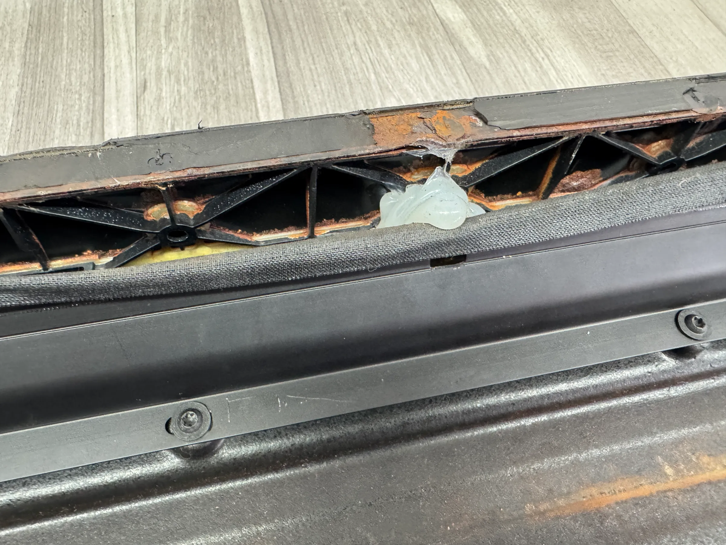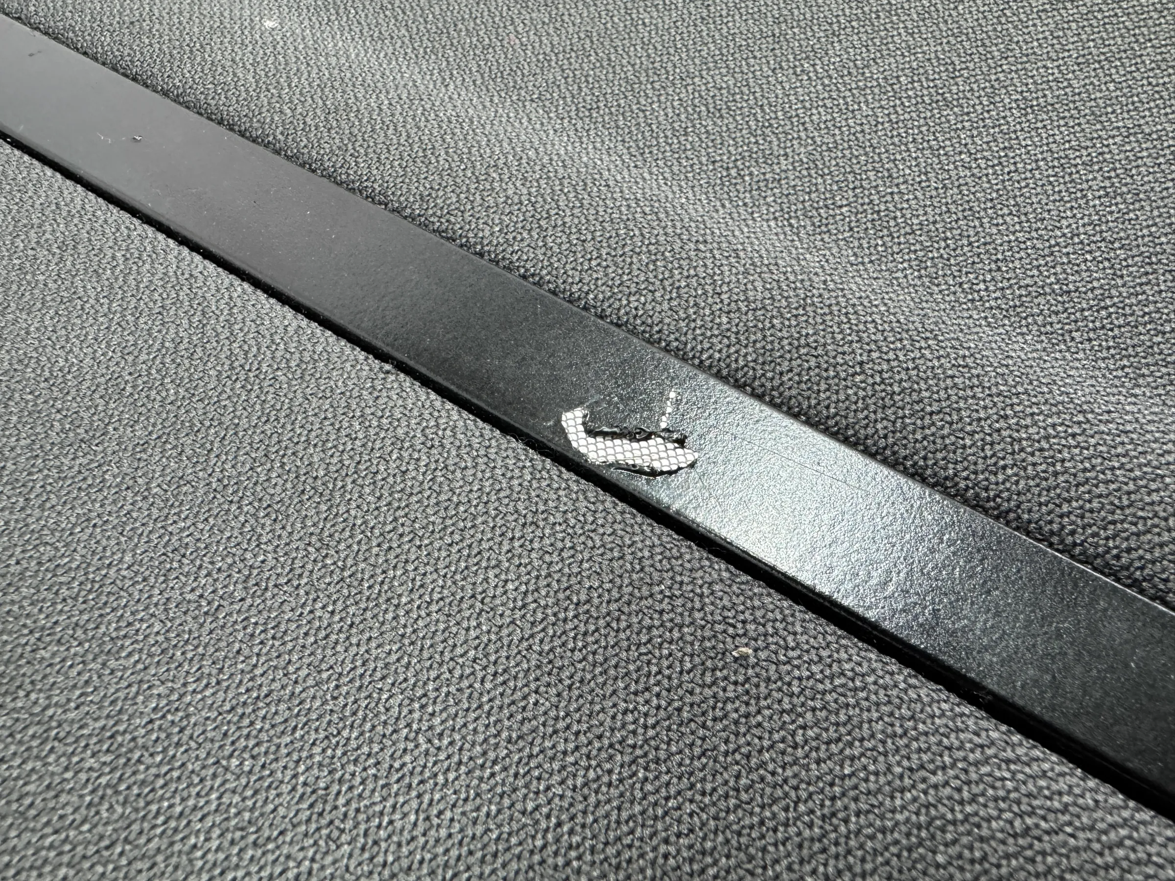 Rollo an der Ecke defekt. (Fäden gezogen)