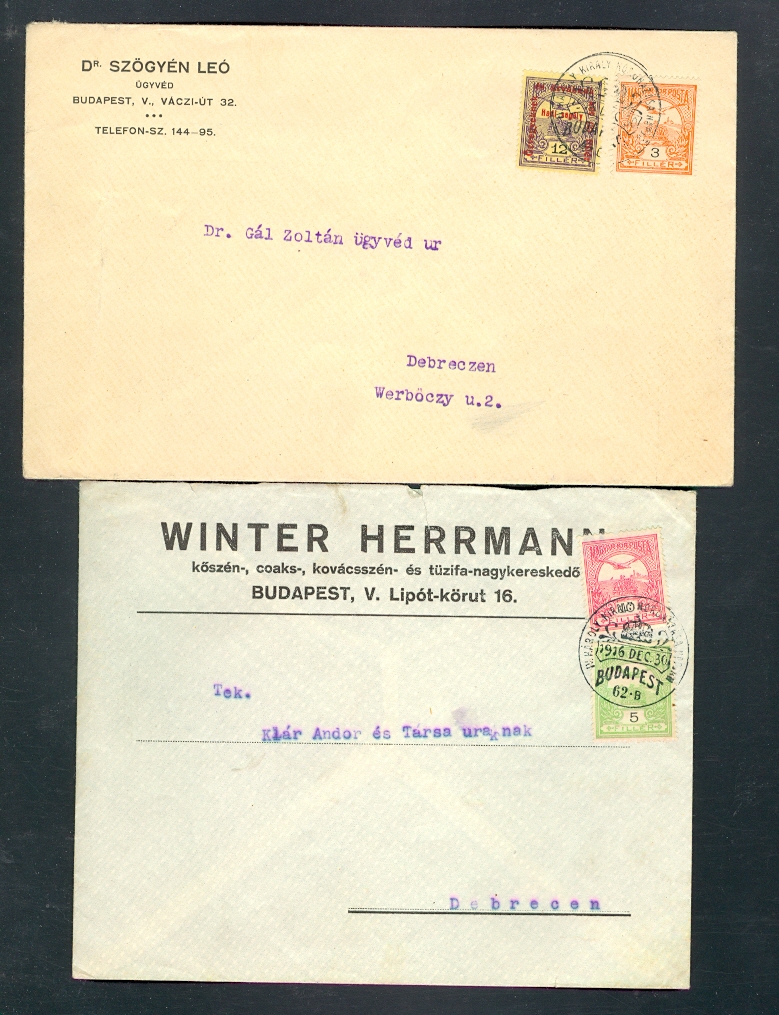 HUNGARY TWO 1916 CORONATION CANCEL COVERS INTERNALLY RATED. Front and back shown.