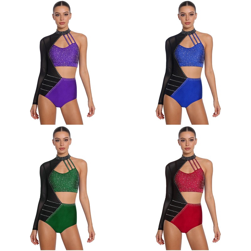 Womens Dancewear Built-in Briefs Outfit Rhinestone Dance Suit Party LyricalUSD 12.99