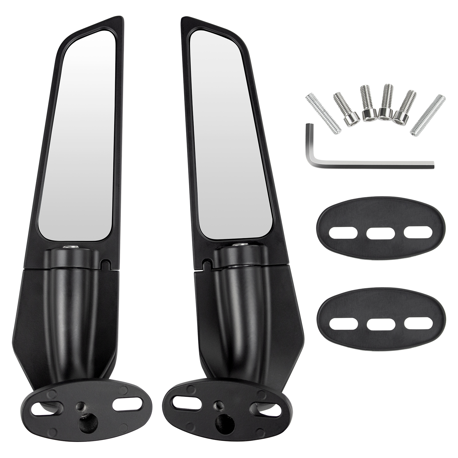 Features: 1Pair Wing Rearview Mirror The mirrors are superb quality, crafted from CNC aluminium. Fixings are made from 304 stainless steel which is very strong and corrosion resistant. Mirror connecting rod can adjust the direction Specifications: Material: Aluminium Alloy Color: Black Placement on Vehicle: Left, Right,Front Fitment: Fit For Kawasaki NINJA ZX6R ZX6RR 2011-2021 Fit For Kawasaki NINJA ZX10R 2009-2021 Fit For Kawasaki NINJA 250 300 400 650 Fit For Yamaha YZF R3 R25 2015-2022 Fit For YAMAHA YZF R15V3 2018-2022 Fit For Yamaha YZF R1 1998-2014 Fit For Honda CBR250R CBR300R Fit For Honda CBR500 CBR650R Fit For Kawasaki NINJA ZX14R ZZR1400 2006-2021 Fit For Kawasaki NINJA ZX10R ZX6R Z636 ZX6RR Fit For Kawasaki NINJA ZX10R 04-10 ZX6R 05-08 Fit For Kawasaki NINJA ZX-25R ZX25R 2020 2021 Fit For Suzuki GSXR 600 750 Fit For Yamaha R3 R25 R15V3 2015-2021 Fit For Kawasaki NINJA 400R 2010-2014 Fit For SUZUKI GSX1300R HAYABUSA 1999-2021 Fit For Kawasaki NINJA 650 2016-2021 Fit For Suzuki GSX250R 2016-2021 Fit For Aprilia RS660 RSV4 All Model Fit For Honda CBR250RR 2017-2021 Fit For Kawasaki NINJA 250SL Fit For Honda CBR1000RR 2004-2016 Fit For Kawasaki NINJA 1000 Z1000SX 2011-2021 Fit For Suzuki GSXR600 2006-2021 Fit For Suzuki GSXR750 2006-2021 Fit For Suzuki GSXR1000 2005-2016 Fit For KAWASAKI NINJA 250 2016-2022 Fit For KAWASAKI NINJA 300 2016-2022 Fit For Kawasaki NINJA ZX10R ZX6RR 2011-2022 Fit For Kawasaki NINJA ZX6R 2009-2022 Fit For Honda RC51 RVT1000R VTR1000 SP1 SP2 2000-2006 Package List: 1Pair Rearview Side Mirrors