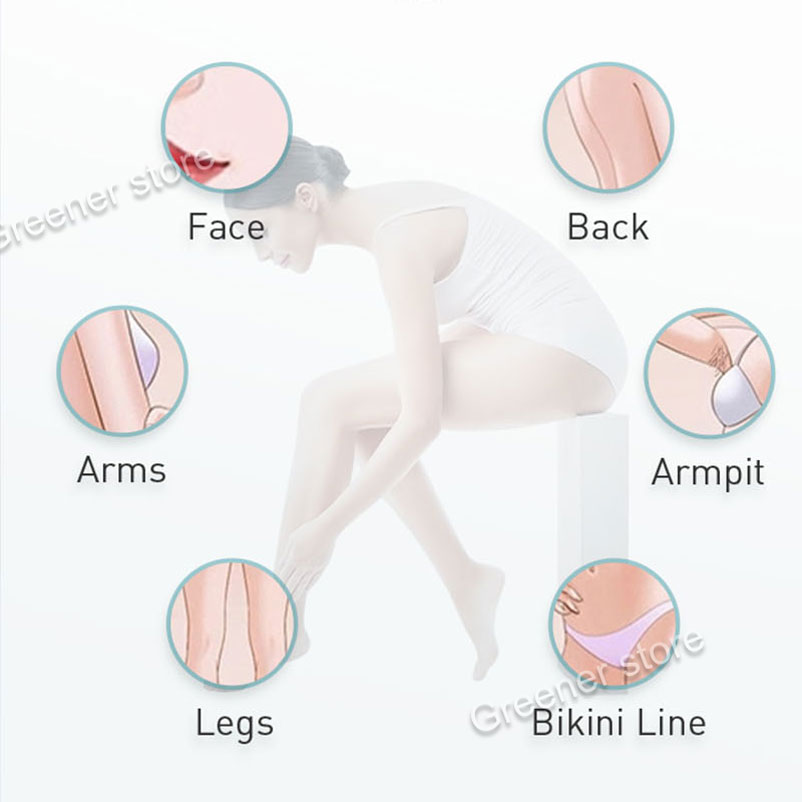 1. Élimination des poils superflus sur les membres, les aisselles, le torse, le dos, le maillot et d'autres parties du corps ;