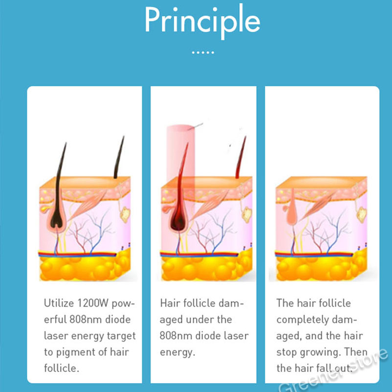 ● Largeur de laser longue : efficace pour les follicules pileux, produit une accumulation de chaleur, épilation définitive.