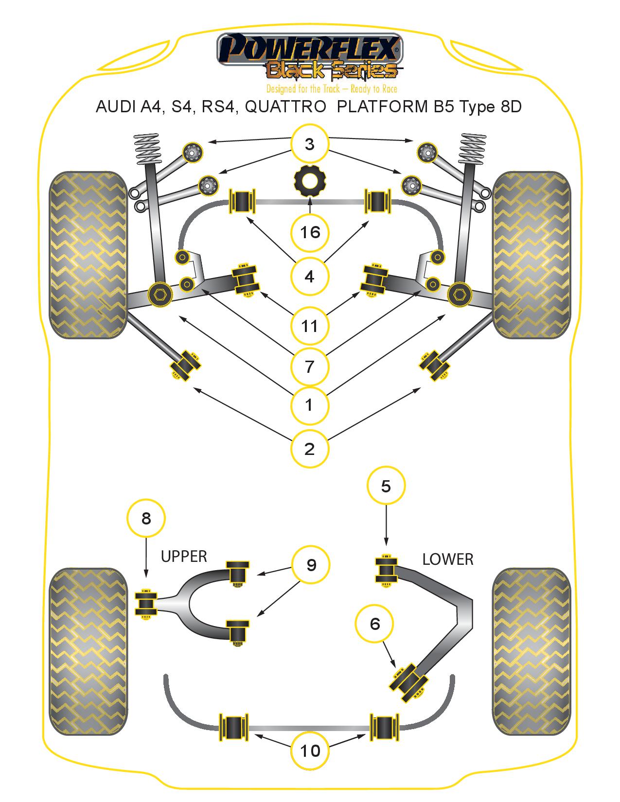Powerflex-Buchse Black Series für Audi S4 S4 Avant (B5) Stabilisator hinten 15mm