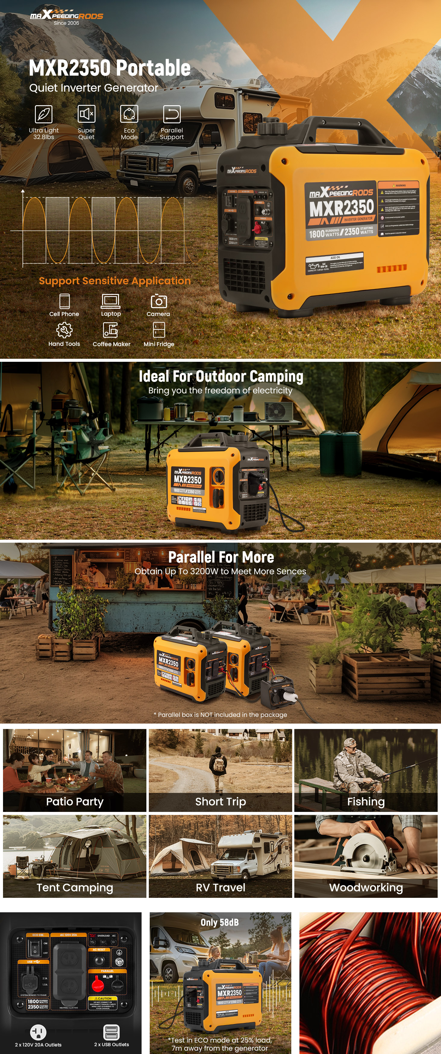 【Parallel Ready】 Two generators can be used in parallel, use a parallel kit(need purchase separately) enables this generator to connect with our another generator to double your output.