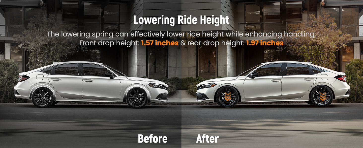 These springs effectively lower your vehicle's center of gravity, improving cornering stability and reducing body roll for a more responsive and controlled driving experience.