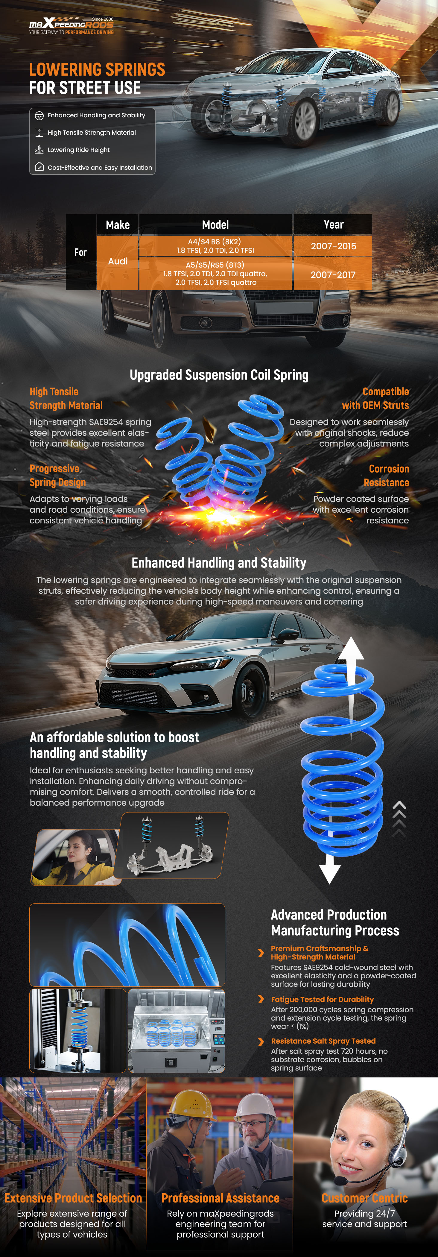 MaXpeedingrods Lowering Springs [1.5"F/1.5"R] For Audi B8 A4 Quattro 2009-2016
