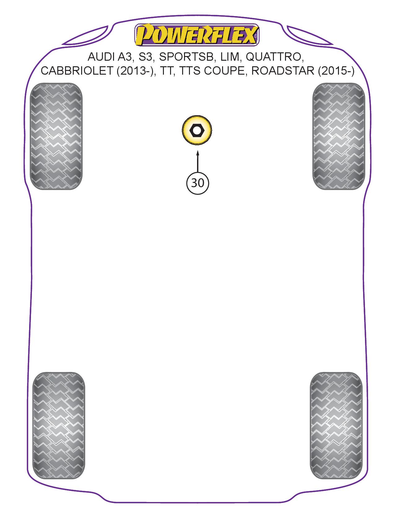 - PFF85-831 replaces the lower half of the original bush OEM part number 5Q0198 037 A and includes an insert to fit into and fill the voids in the upper bush. This unique bush has been designed to be fitted without subframe removal from the vehicle and avoids associated wheel alignment costs.