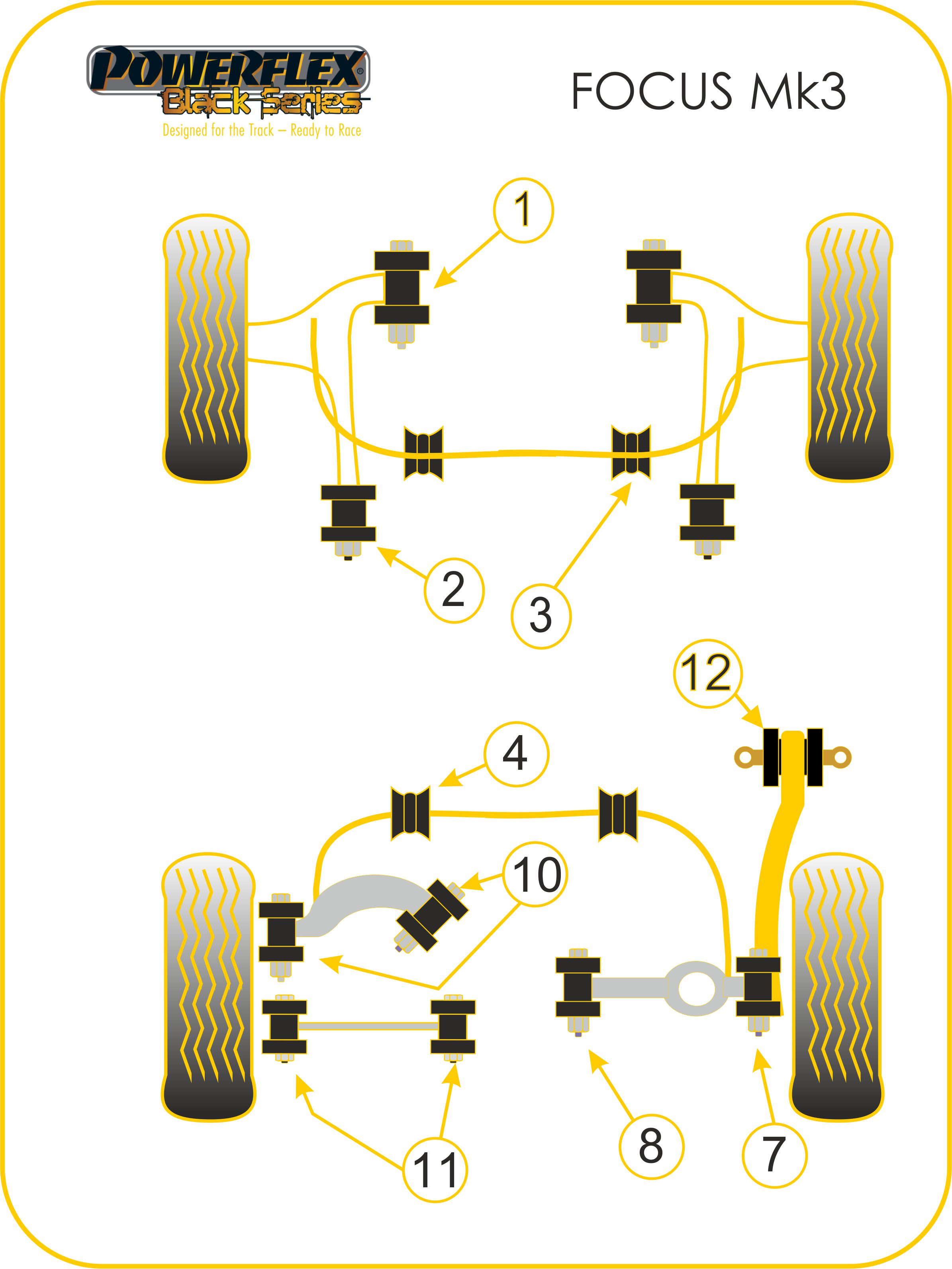 Powerflex-Buchse Black Series für Ford Focus Mk3 ST (2011-) Stabilisator zum Fahrgestell vorne 25,5mm