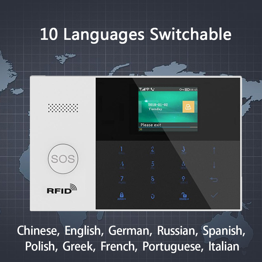 15. Support multi-language menu display, voice prompts and alarm SMS setting.