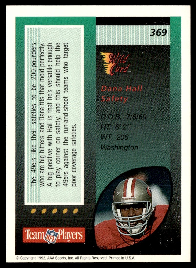 1992 Wild Card Dana Hall Rookie San Francisco 49ers #369