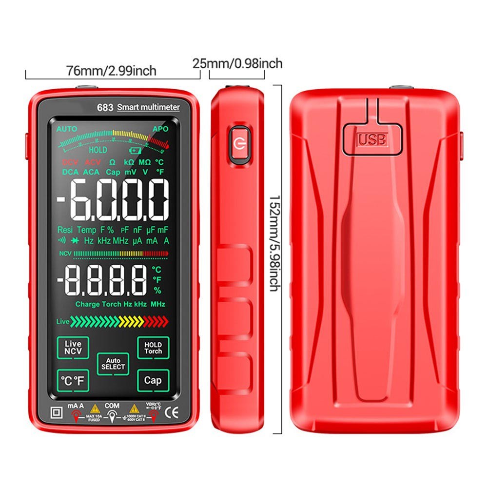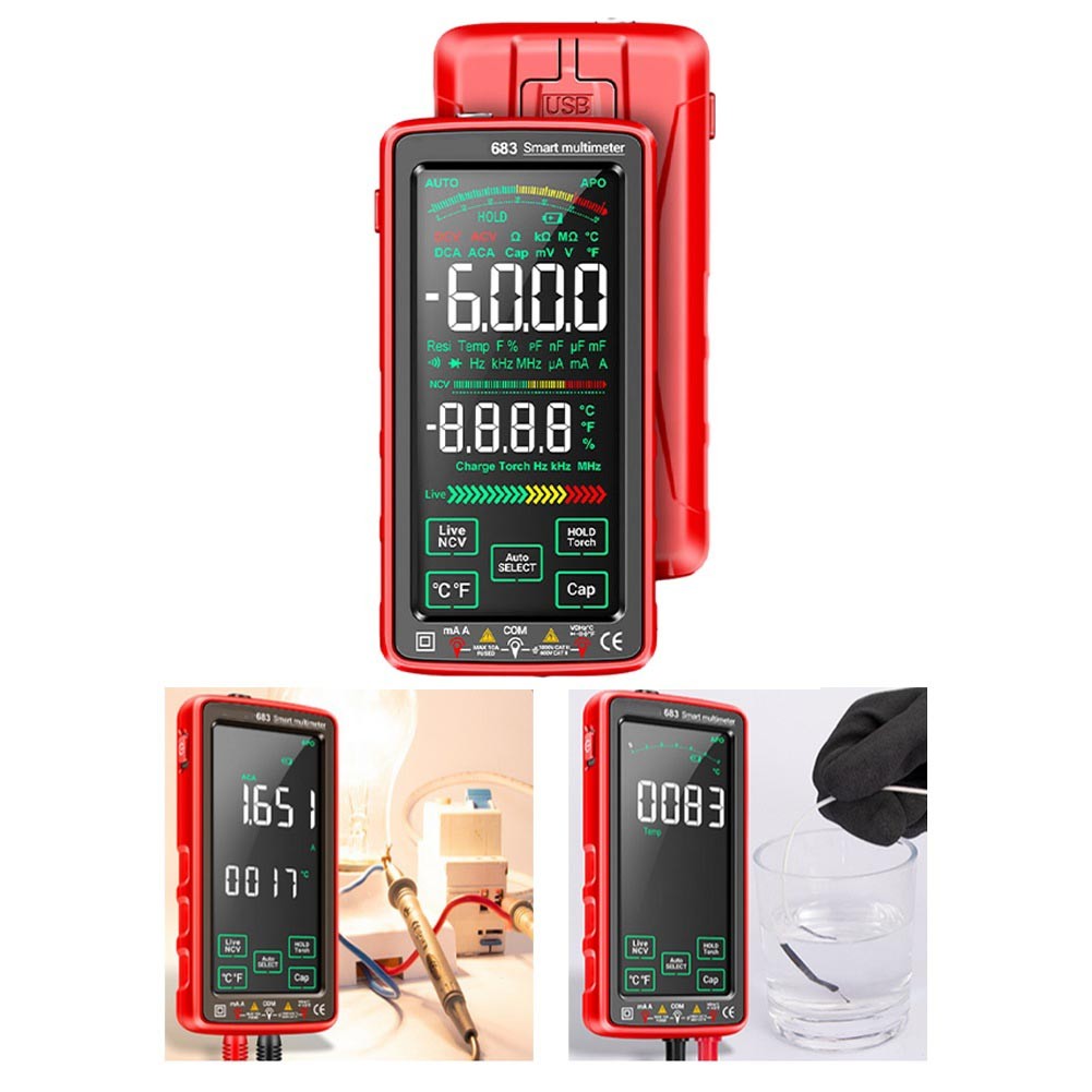 683 Full Screen Digital Multimeter VA Touch Screen AC/DC Multimeter USB Charging