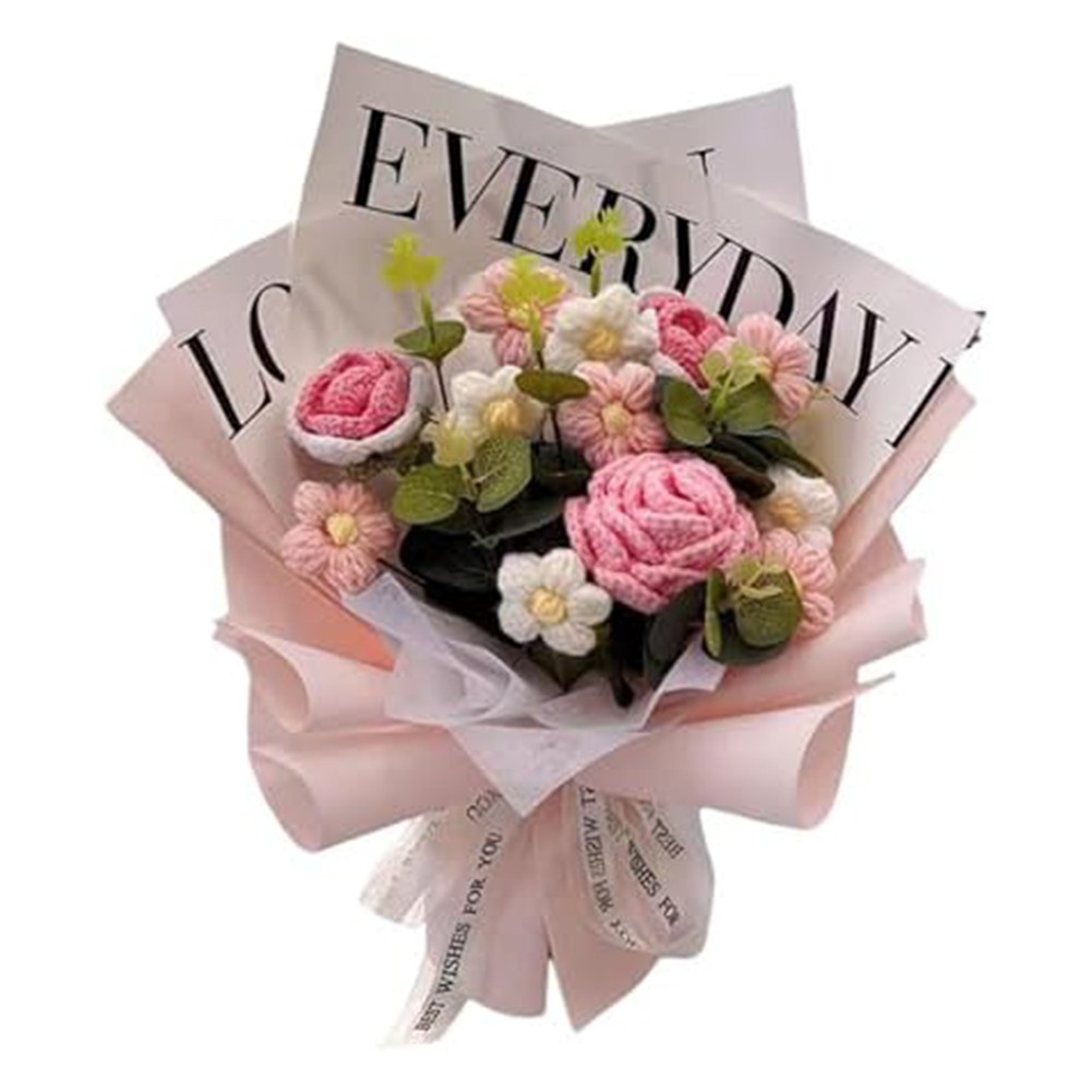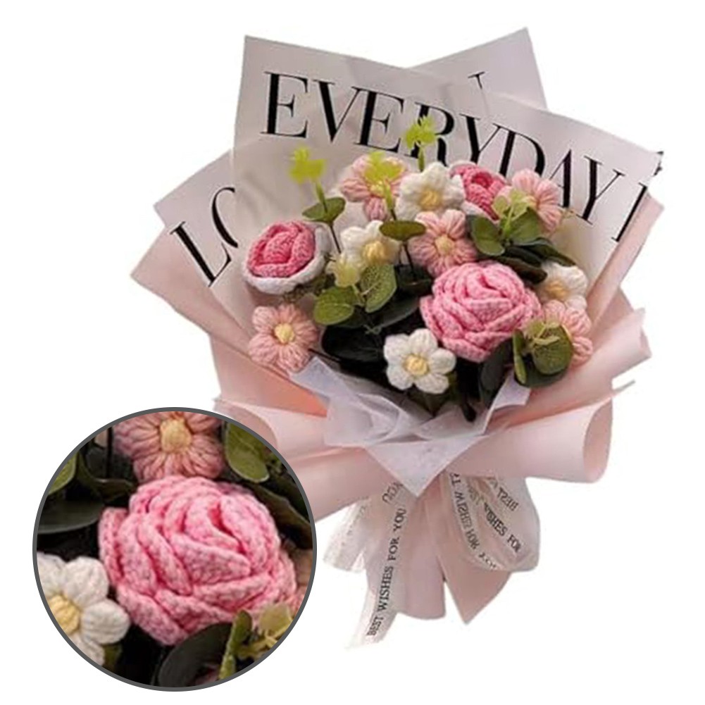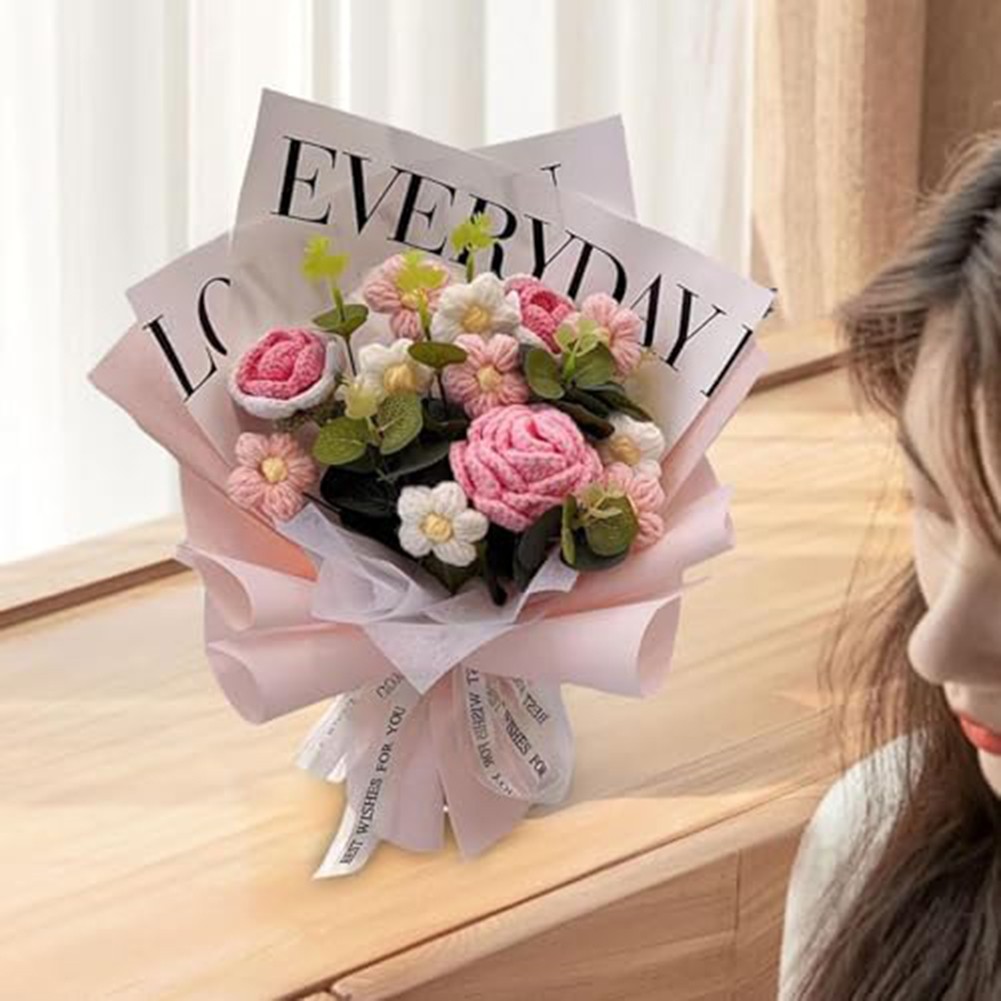 *Realistic Appearance: The Handmade Knitted Finished Bouquet is crafted from yarn and PP material, offering a lifelike look that appeals to those who may have allergies to for traditional flowers, making it an excellent alternative for sufferers.