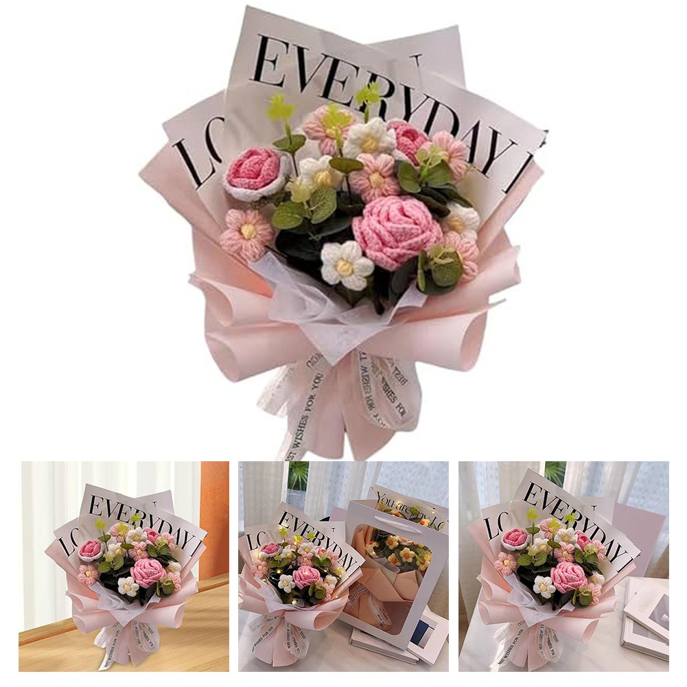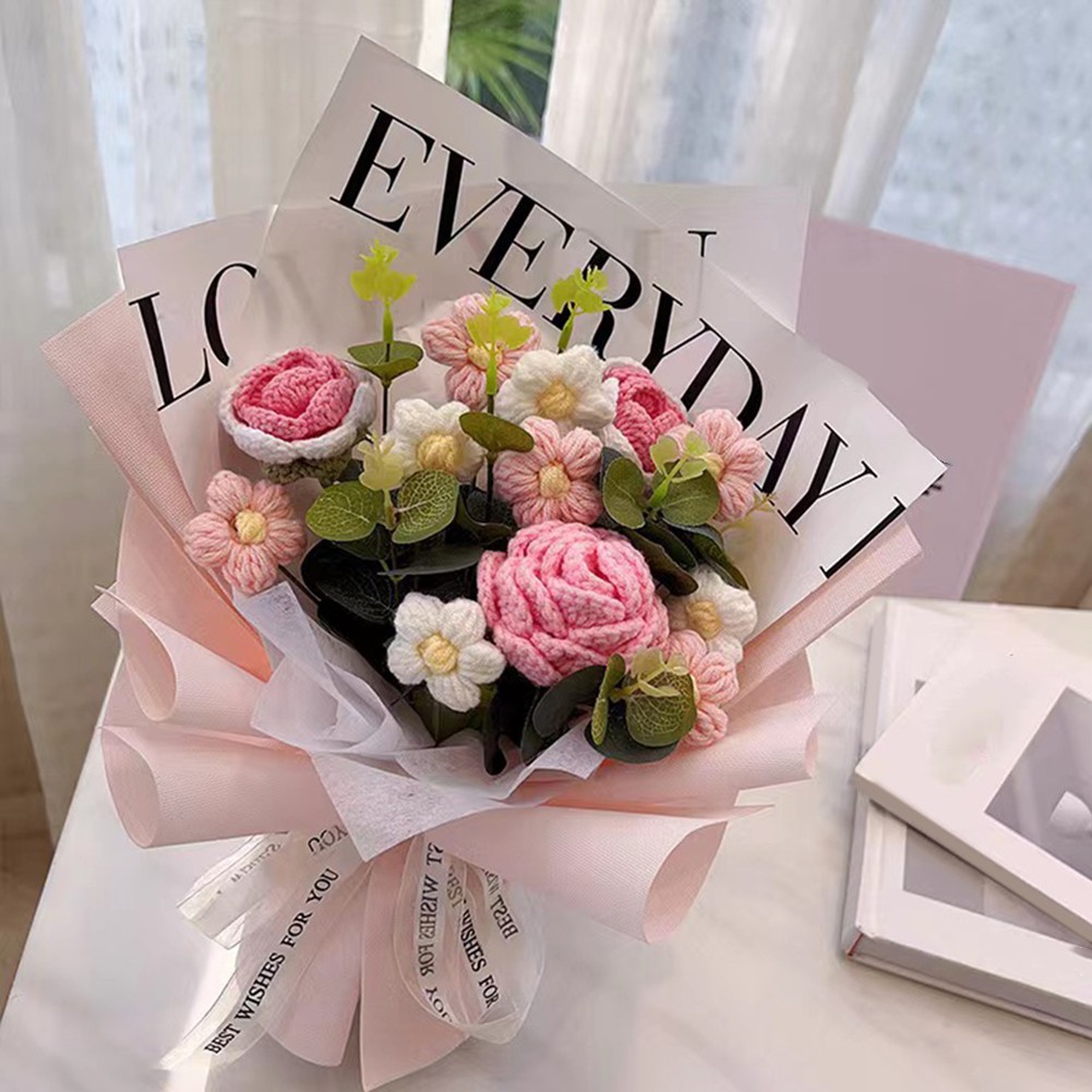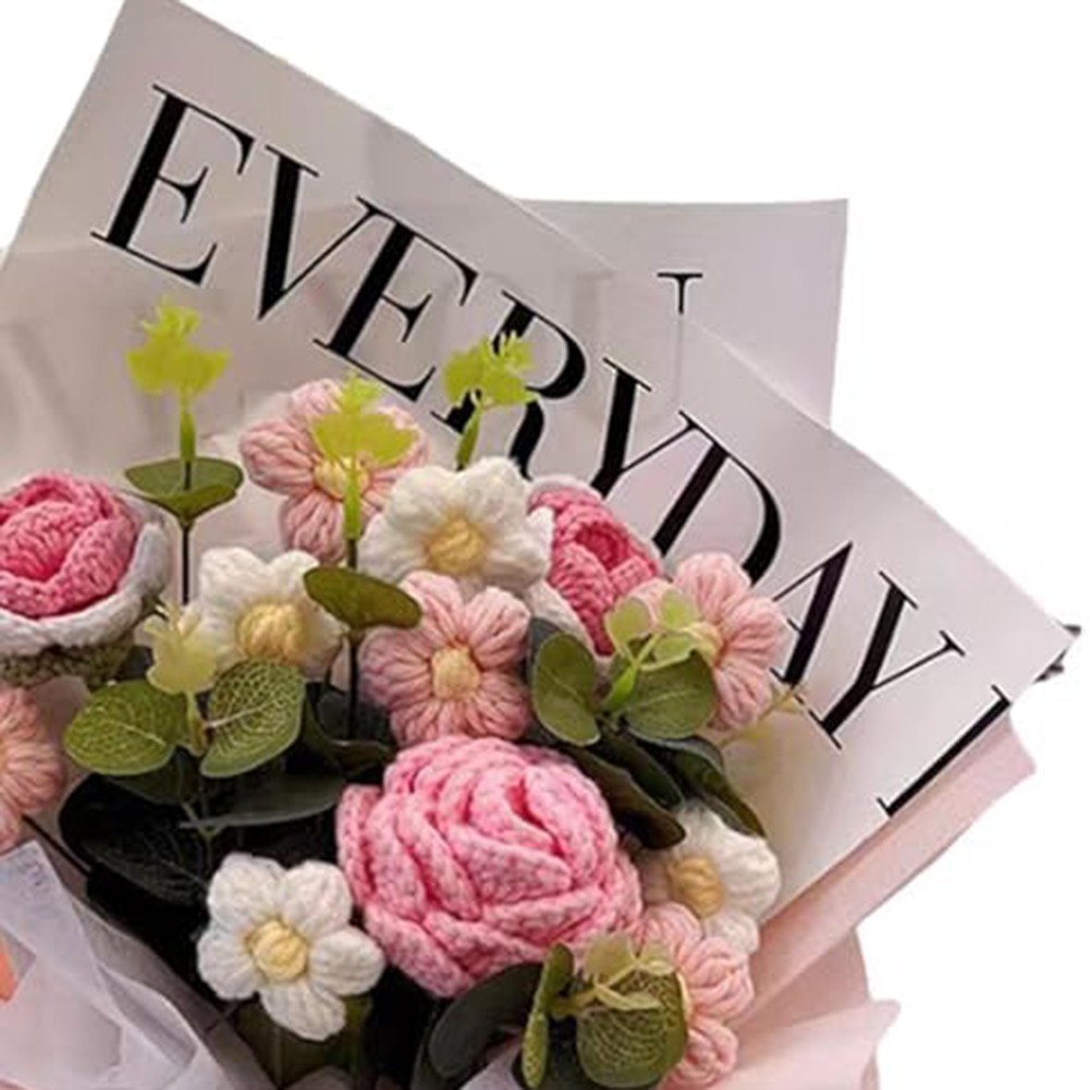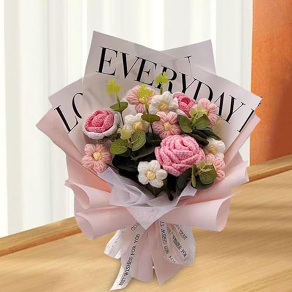 *Realistic Appearance: The Handmade Knitted Finished Bouquet is crafted from yarn and PP material, offering a lifelike look that appeals to those who may have allergies to for traditional flowers, making it an excellent alternative for sufferers.