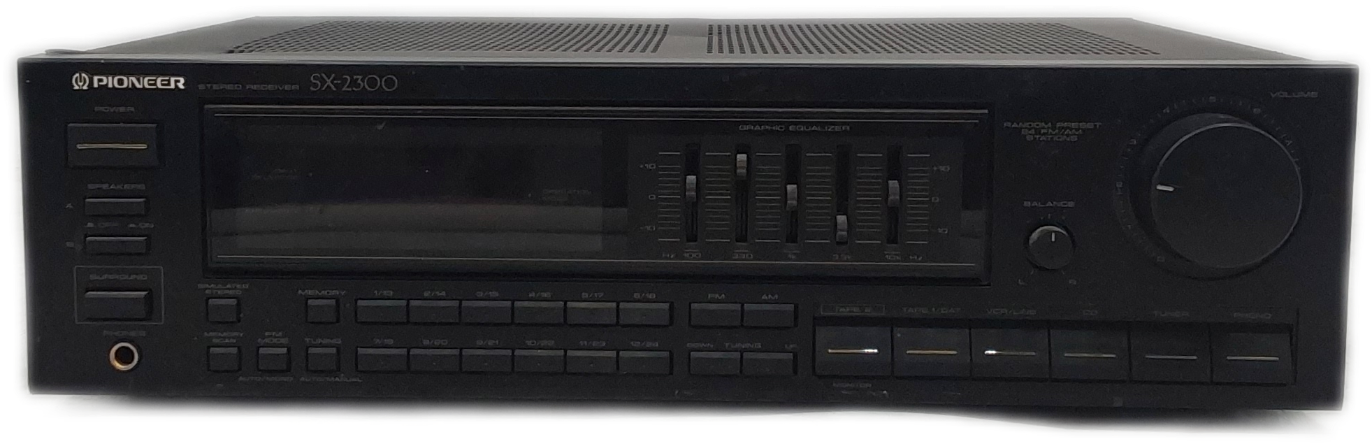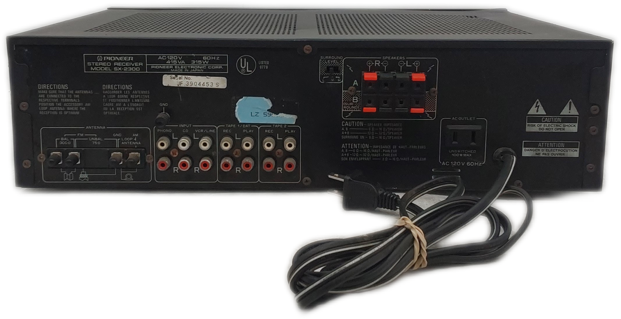 The Pioneer SX-2300 is a classic stereo receiver designed for high-fidelity audio playback in home setups. This 2-channel amplifier delivers 130W of power per channel, supporting AM/FM radio tuning and multiple audio inputs for connecting turntables, stereo sources, and more. Ideal for audiophiles and vintage audio enthusiasts seeking reliable analog performance from the 1970s era, it enhances listening experiences with its robust build and clear sound reproduction. Whether integrating into a retro hi-fi system or modernizing with compatible components, this receiver provides versatile connectivity for phono, RCA, and speaker outputs.
