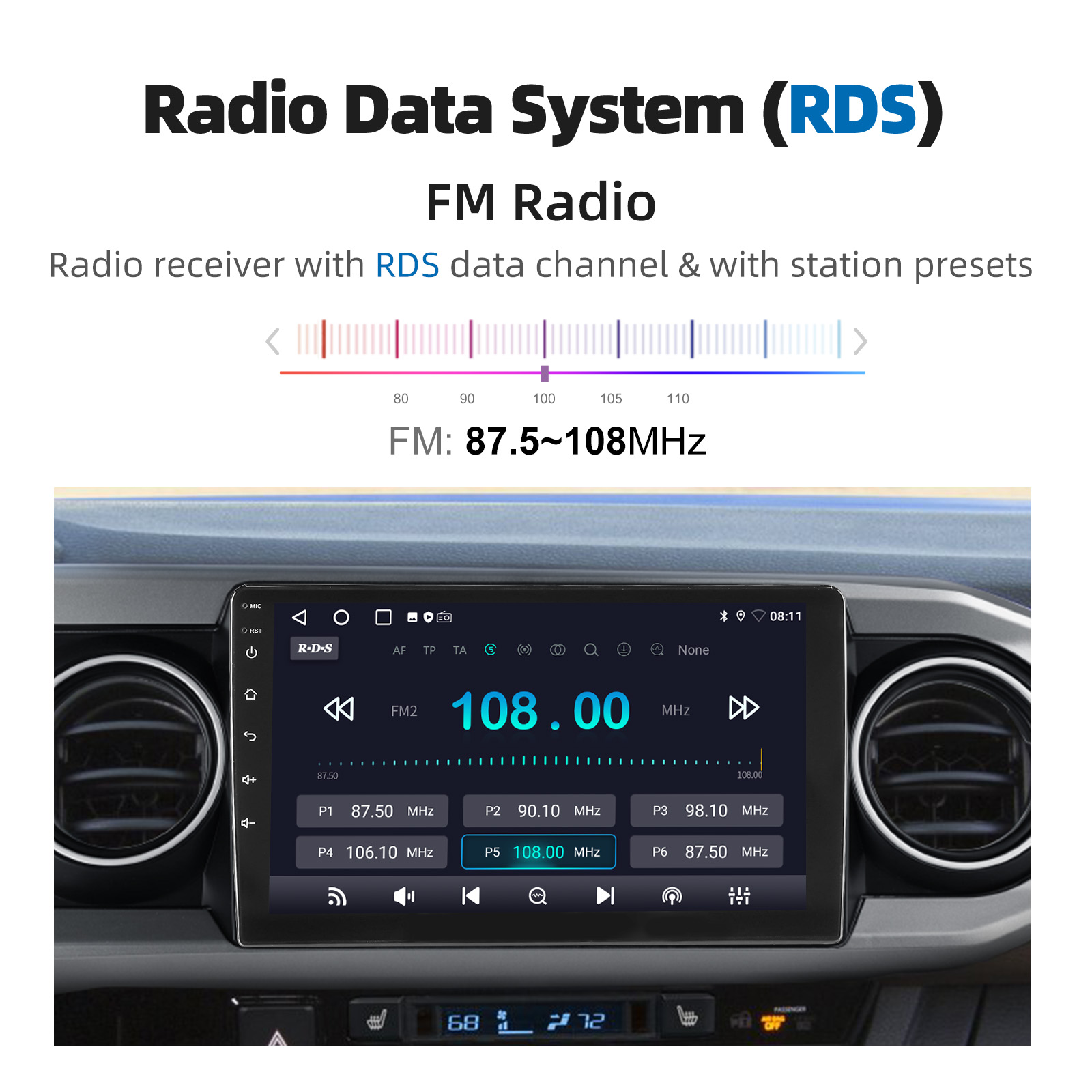 Radio Data System (RDS): RT, AF, TA provides all the FM channel information you need(europe).