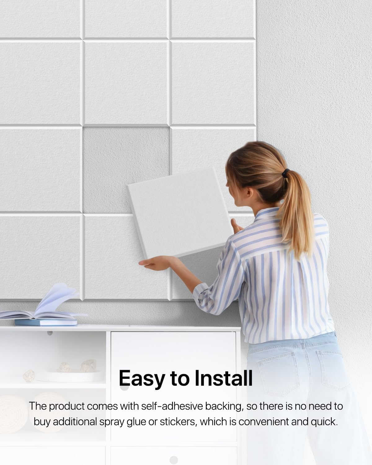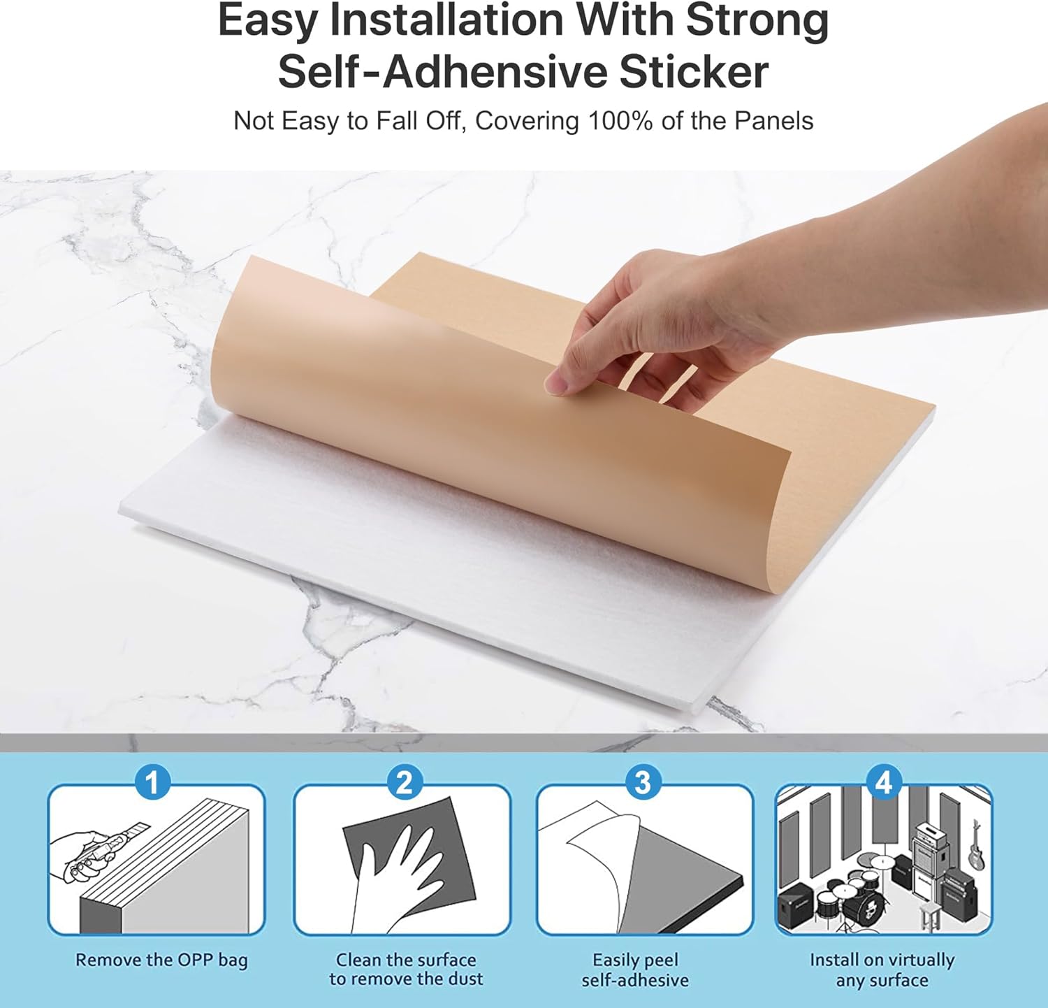 【 Easy Installation 】: Our sound-absorbing panel is self-adhesive, making it convenient for you to install. All you need to do is accurately peel off the film on the back and stick each panel to the desired position. No special tools or materials are needed! But be careful not to accidentally tear off the adhesive.