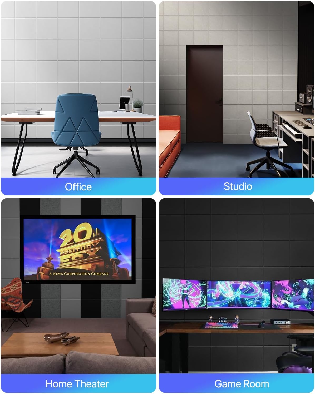 【 Environmental Protection and Indoor Use 】: Professional sound-absorbing panels are perfect for handling sound on studio or office walls, and decorating your recording studio, control room, home theater, and home office. It is safe to touch and breathe because of its odorless and environmentally friendly soundproofing material.