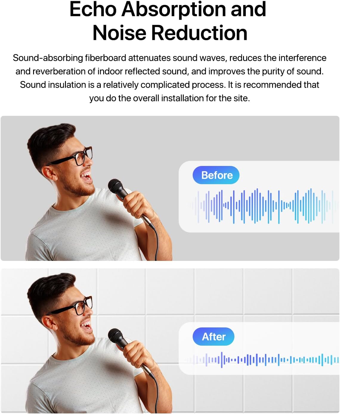 【 Improving Sound Quality 】: The soundproof wall panel made of high-density polyester felt has done a great job in reducing noise, eliminating sound impurities, and improving speech clarity.