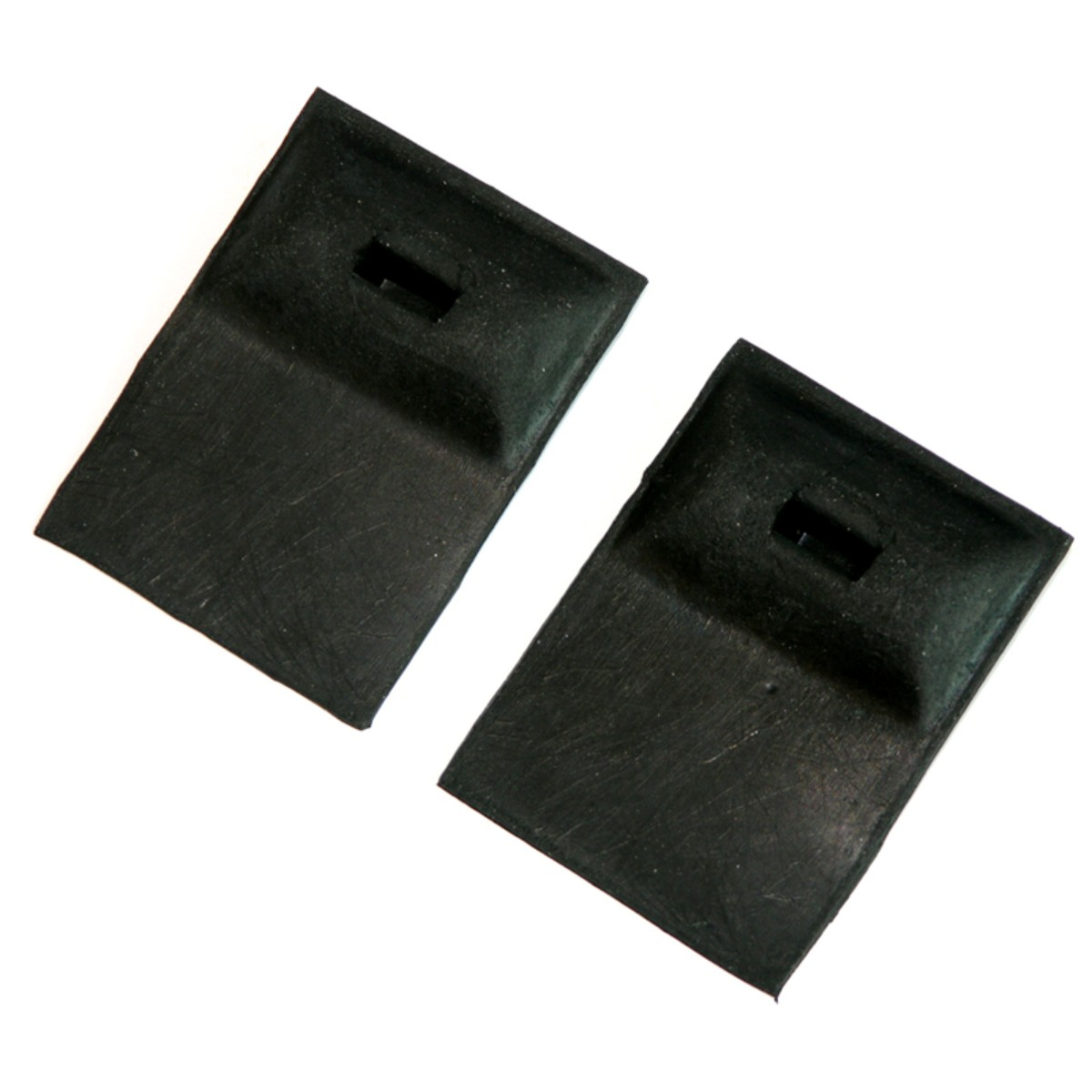 These are the rubber plugs that go into the underbody at the inside rocker panel near the back of the rocker. There is a square hole to accept the rubber flap. There are one on each side of the inner rocker. When your car was new the body was dipped into a black or red color dye / paint and these holes in the rocker allowed the fluid to drain. The plugs then sealed over the holes. These are exact to the factory originals in the black rubber.