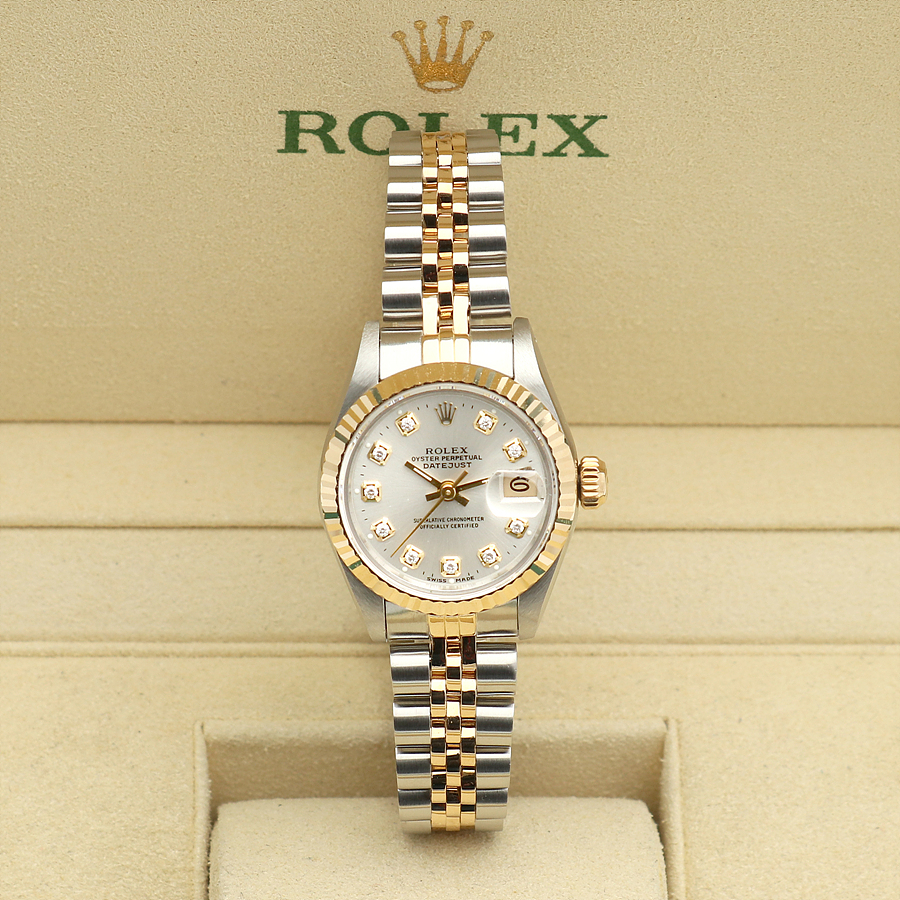 - Classic Rolex Datejust 26 silver dial ladies combi watch model 69173, featuring after-set diamonds from 1990 - Elegant yet bold design, ideal daily watch - Vintage model celebrated for its unique combination of classic beauty and functionality - Silver dial paired with yellow gold accents for a stylish and refined look - Versatile accessory suitable for various styles - Comes with watch, store warranty card (2 years free repair service), case, user manual, portable pouch, and microfiber towel - Model number: 69173 - Unique number: 853**** (year of manufacture: 1990) - 26mm case size, made of 18K yellow gold and steel combination, silver dial, ten-point after-set diamond, date window, sapphire glass - Automatic movement requires periodic maintenance, ideally every 4-5 years - Exquisite watch symbolizing personal milestones, perfect for birthdays - Gender: Women - Brand: ROLEX - Product Name: Rolex Datejust 26 Silver Dial Ladies Combi Watch 69173 After-Set 148680019 - Condition: A+ - Color: silver - trenbe Code: 148680019 |