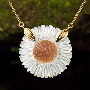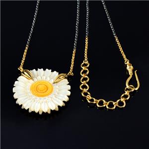 COLLIER NACRE FLEUR MARGUERITE COMBINÉ & VERMEIL OR sur ARGENT STERLING