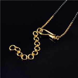 La chaîne Rolo-design est noire oxydée et la chaîne d'extension ainsi que le crochet et le fermoir à œil en S sont plaqués or.