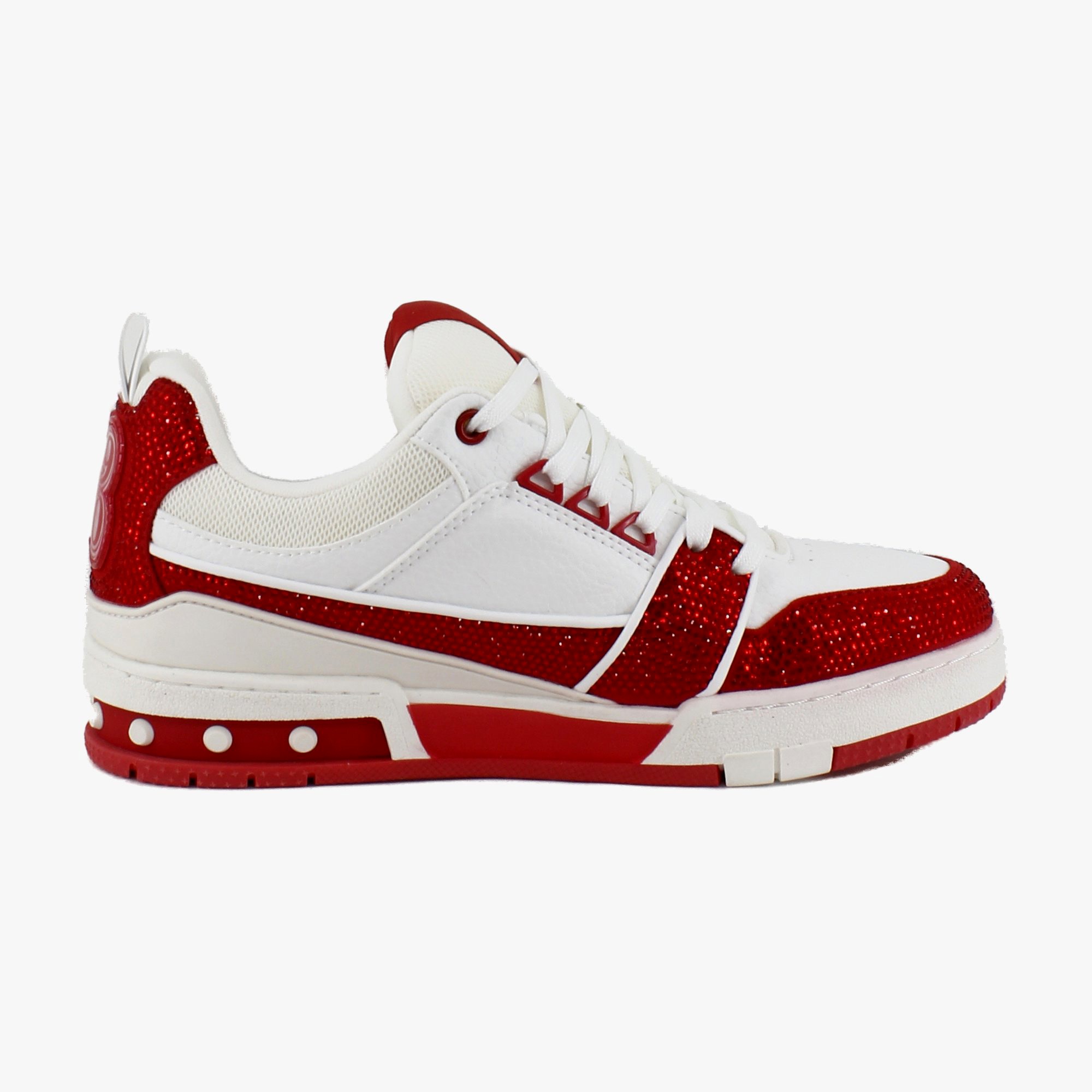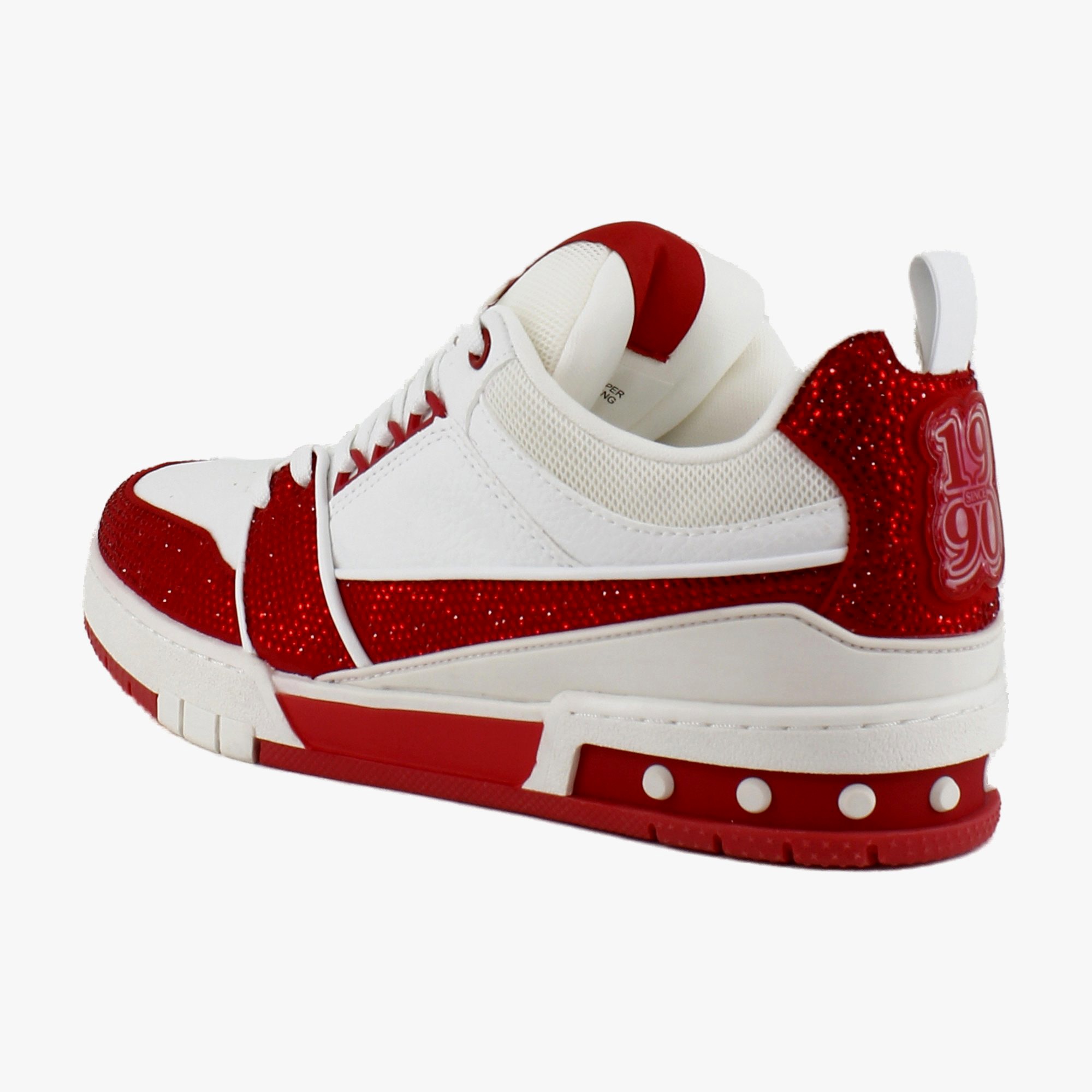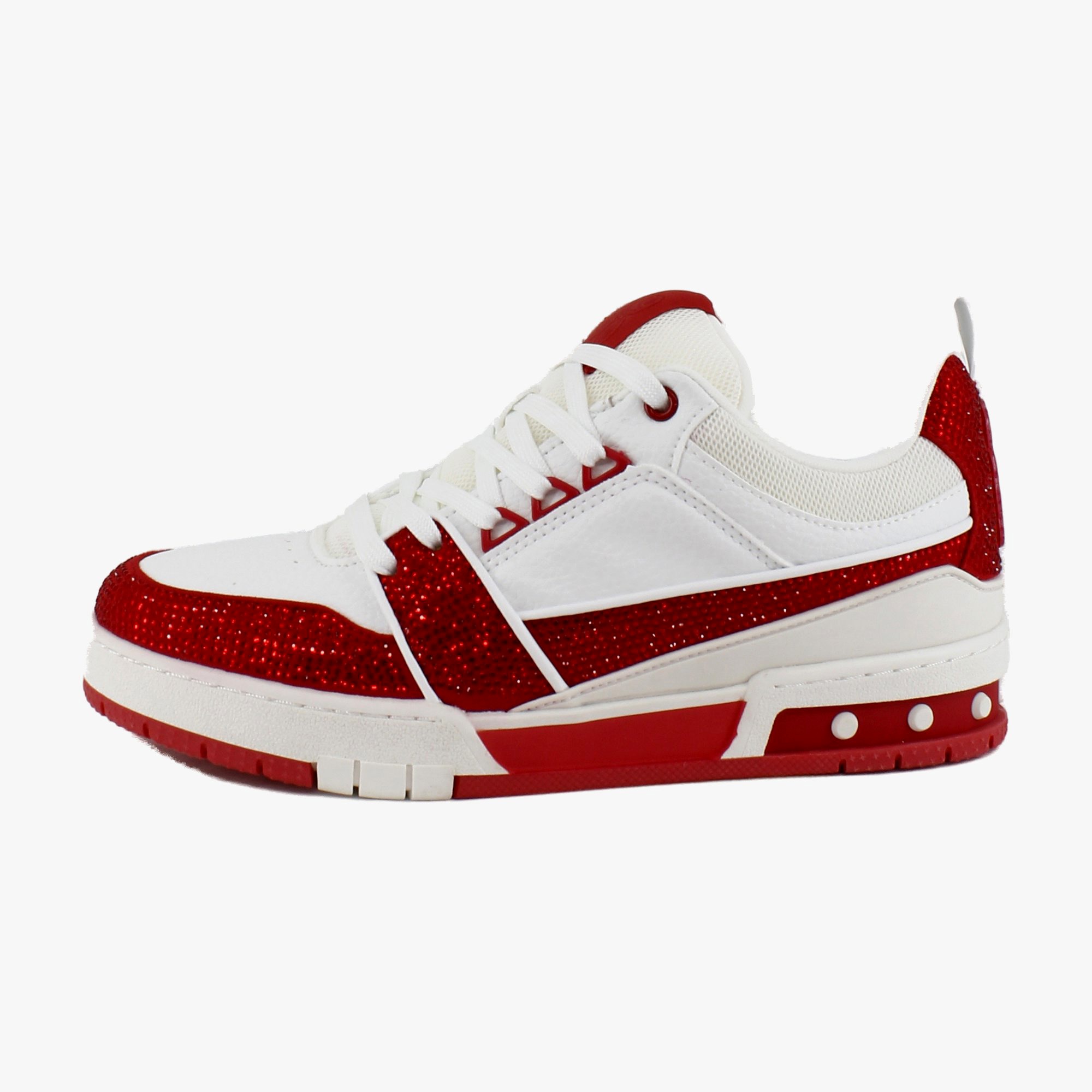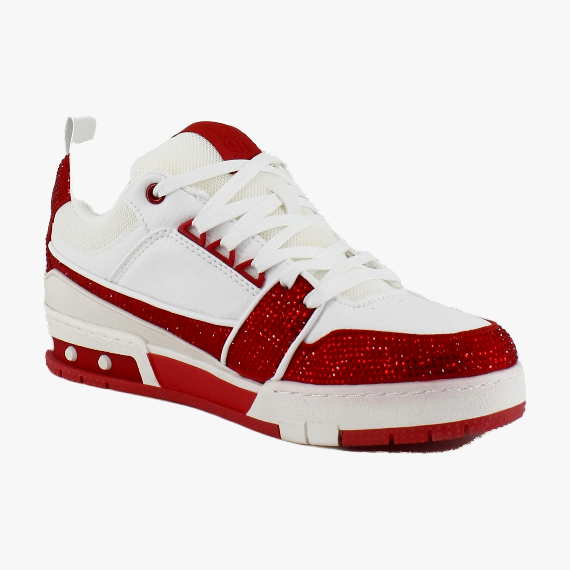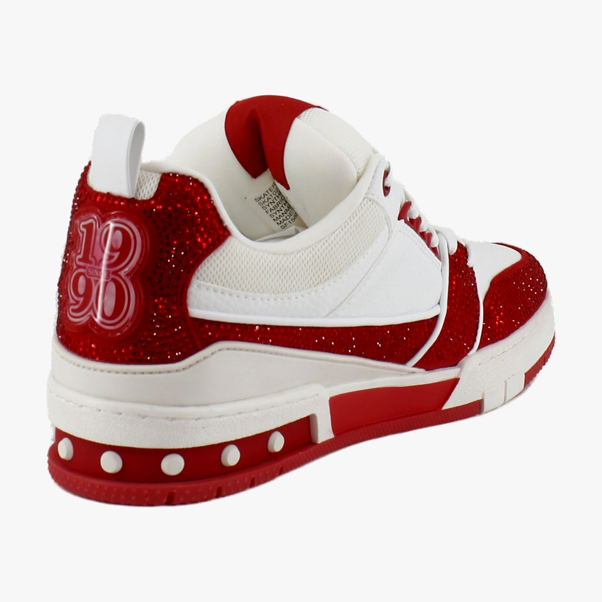 Step into edgy glam with the Steve Madden Skater, a low-top, chunky sneaker that combines the street-style of skate shoes with a sparkle of high fashion. These embellished sneakers make a statement, while offering versatile wear for both casual and dressier looks. Lace them up and let your feet do the talking.
