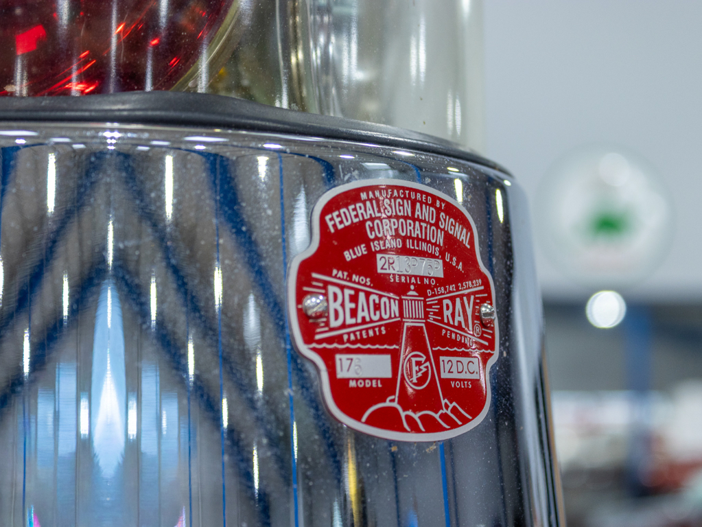• Emergency Lighting: Working Federal Model 176 roof beacon, Unity driver-side red flasher, and red glass sealed-beam high beams.