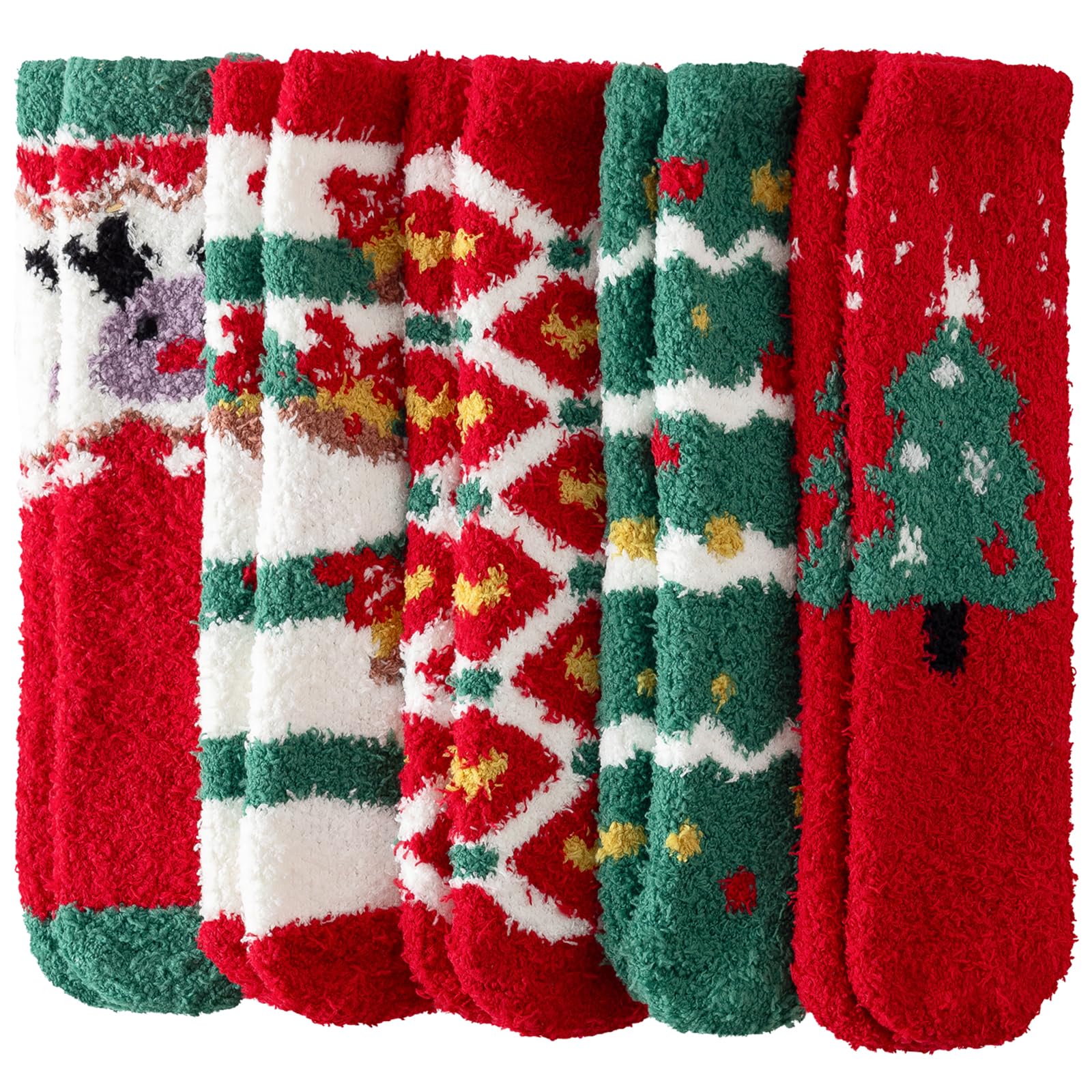 - GOOD FIT & STYLYES OPTION: The fuzzy socks for women are elastic and will fit most peoples feet good.We have multiple stylish and soft socks for you to choose , such as a varieties of colors pure comfy socks, fuzzy cute and soft socks for wome, a unique designed Christmas card is presented to send the best greetings for the Christmas Day.