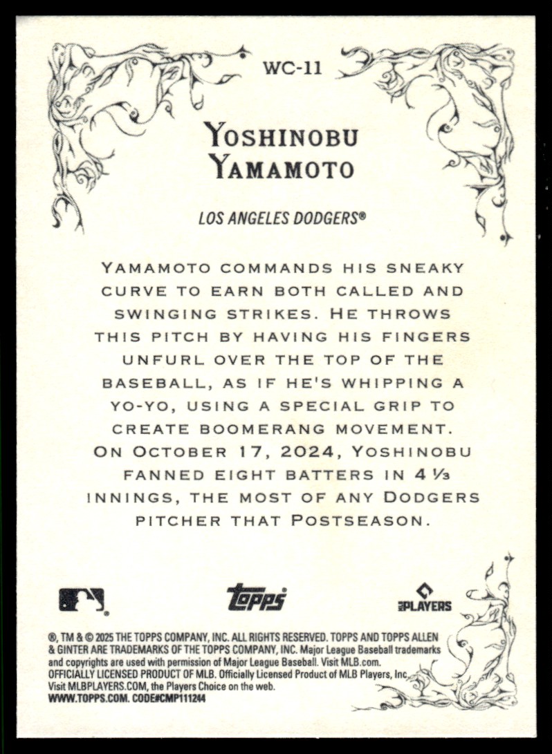 | Yoshinobu Yamamoto 2025 Topps Allen & Ginter Wicked Curves Insert Card #WC-11 |