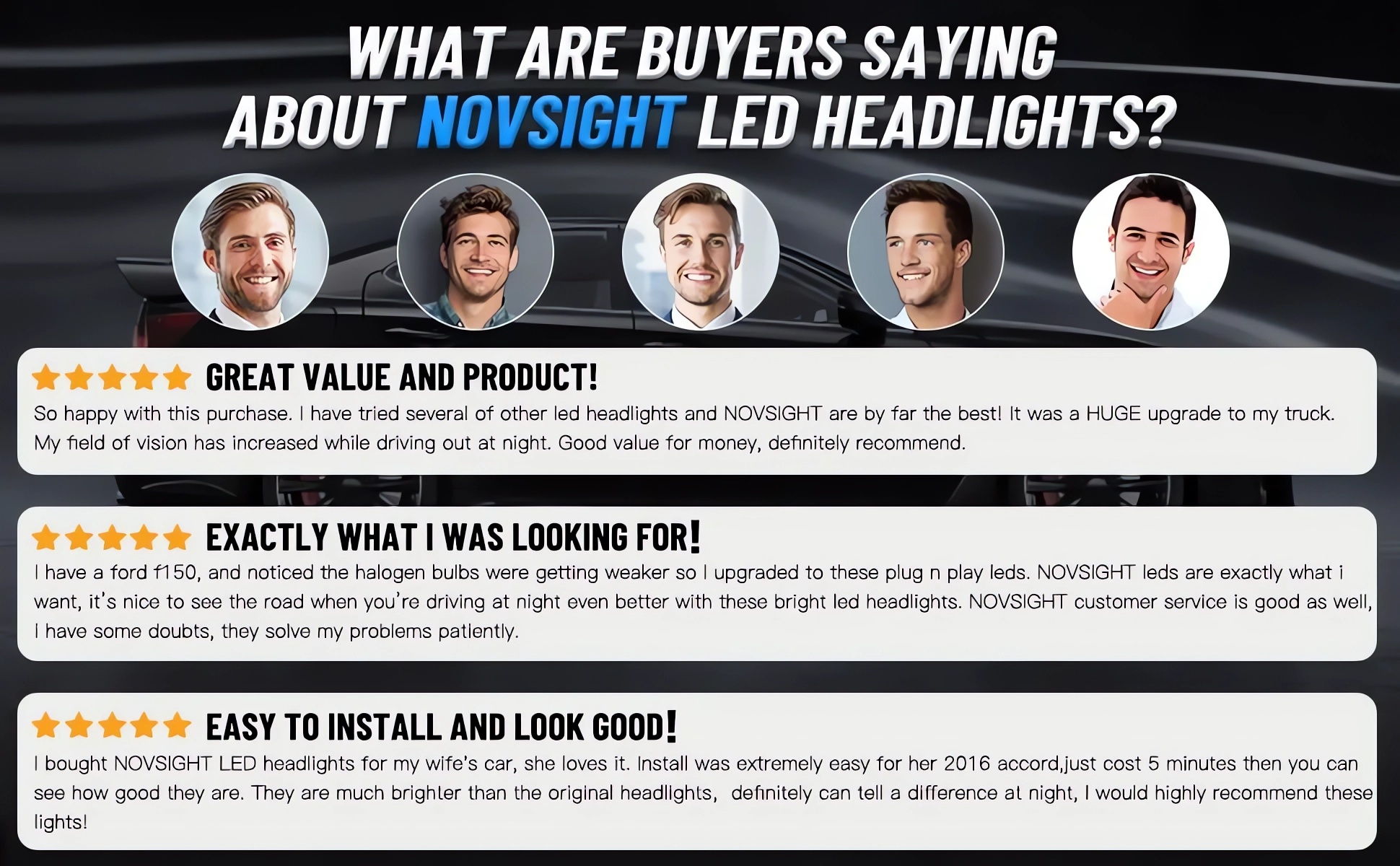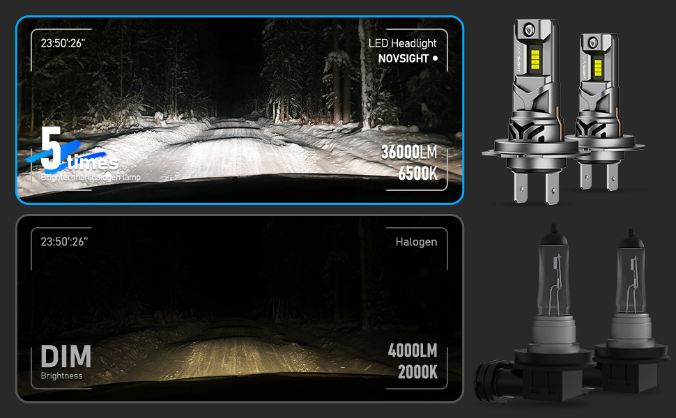 【Advanced Beam Pattern】With NOVSIGHT bulb, you can drive with confidence, getting a perfect balance of near and far lighting for a safer and more comfortable driving experience.