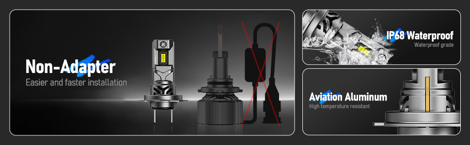 【Over 100,000 Hours Lifespan】Built-in mute turbofan and the aviation aluminum material for best cooling, which leads to a longer service life than the halogens, no more frequent changes.