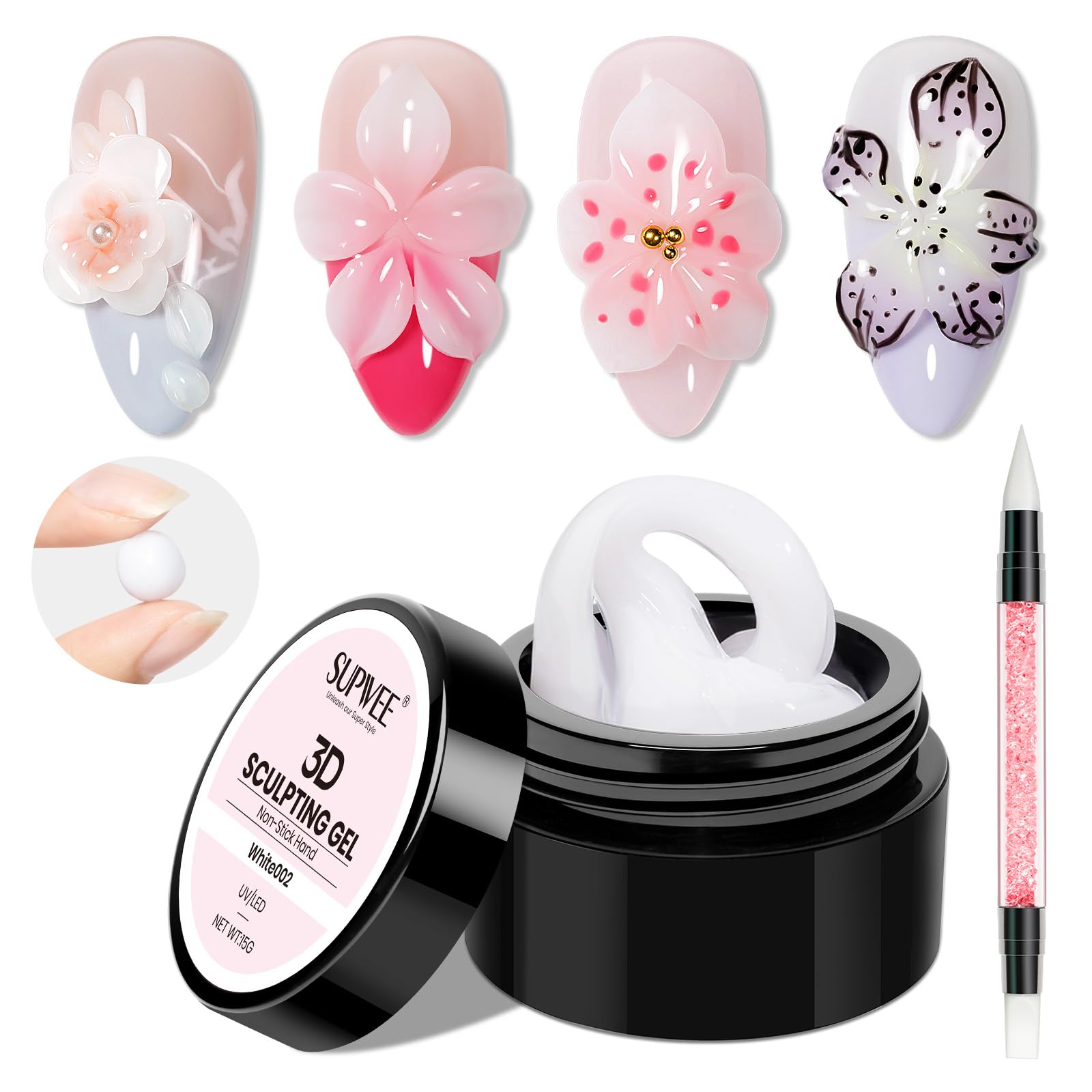 SUPWEE 3D Nail Sculpting Gel for Nails Art, White 0.49 Ounce, 15g-White