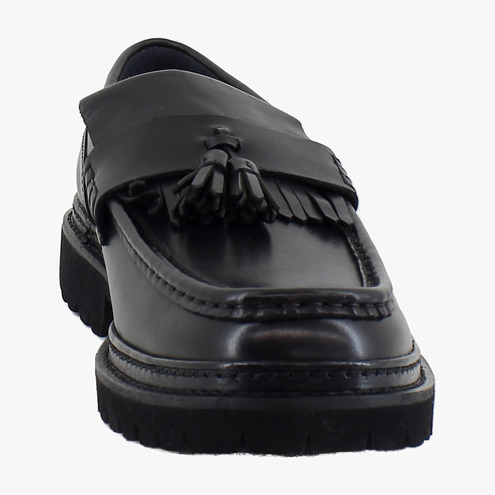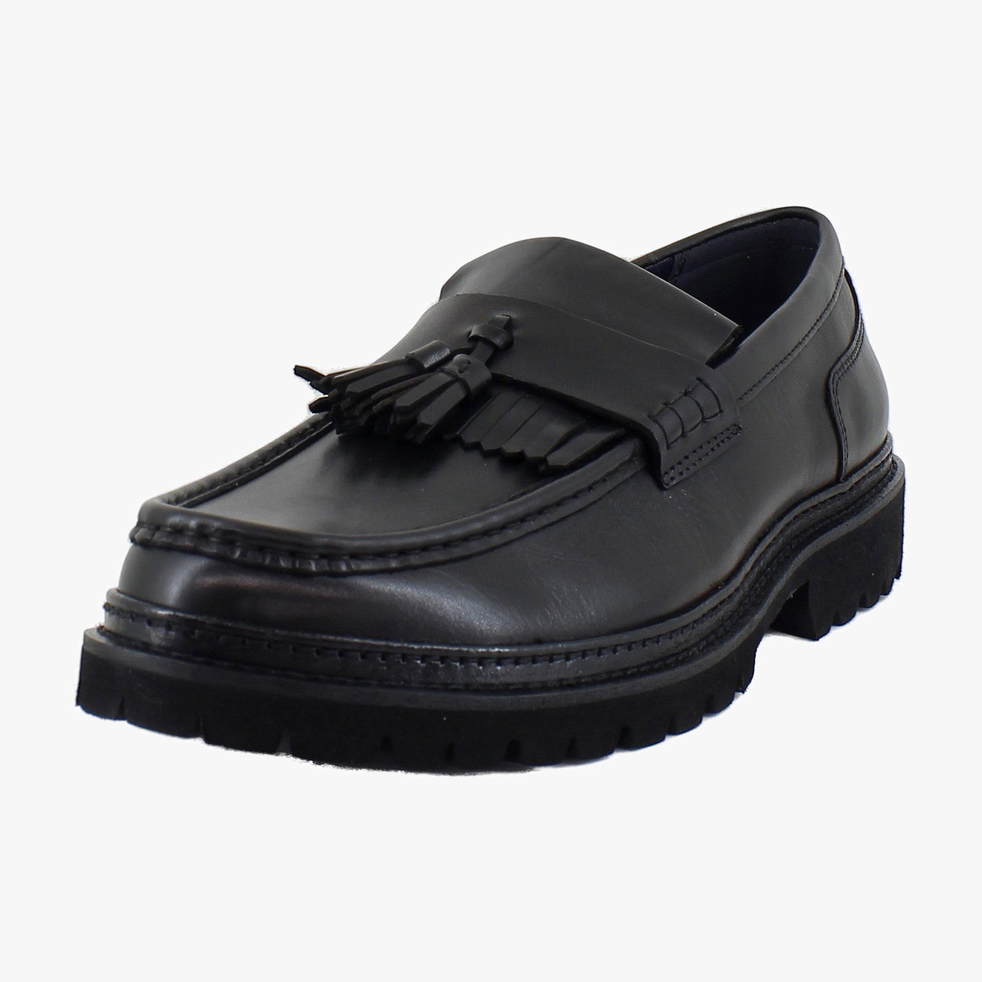 Embrace timeless elegance with the Steve Madden Ashford Lugged Kiltie Tassel Loafer, where classic design meets contemporary flair. Crafted from premium leather, this loafer showcases a sophisticated kiltie flap and stylish tassels, all while providing a sturdy, lugged sole for enhanced grip.