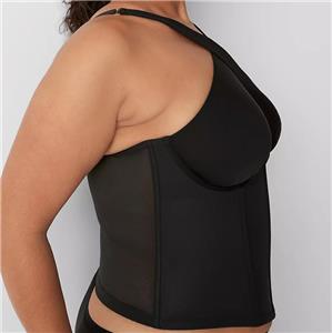 A wrap bra & corset all in one! Designed in soft microfiber and mesh, it shouldn't be for your eyes only. Wear it under a blazer for a steamy date-night look. Medium coverage. Unlined. Adjustable straps. Fourteen-row hook & eye back closure. Wrap silhouette. Rocker underwire offers support and lift. Plastic boning at princess seams and center front on corset. Mesh corset panel. Soft microfiber fabric. Made of nylon/spandex.