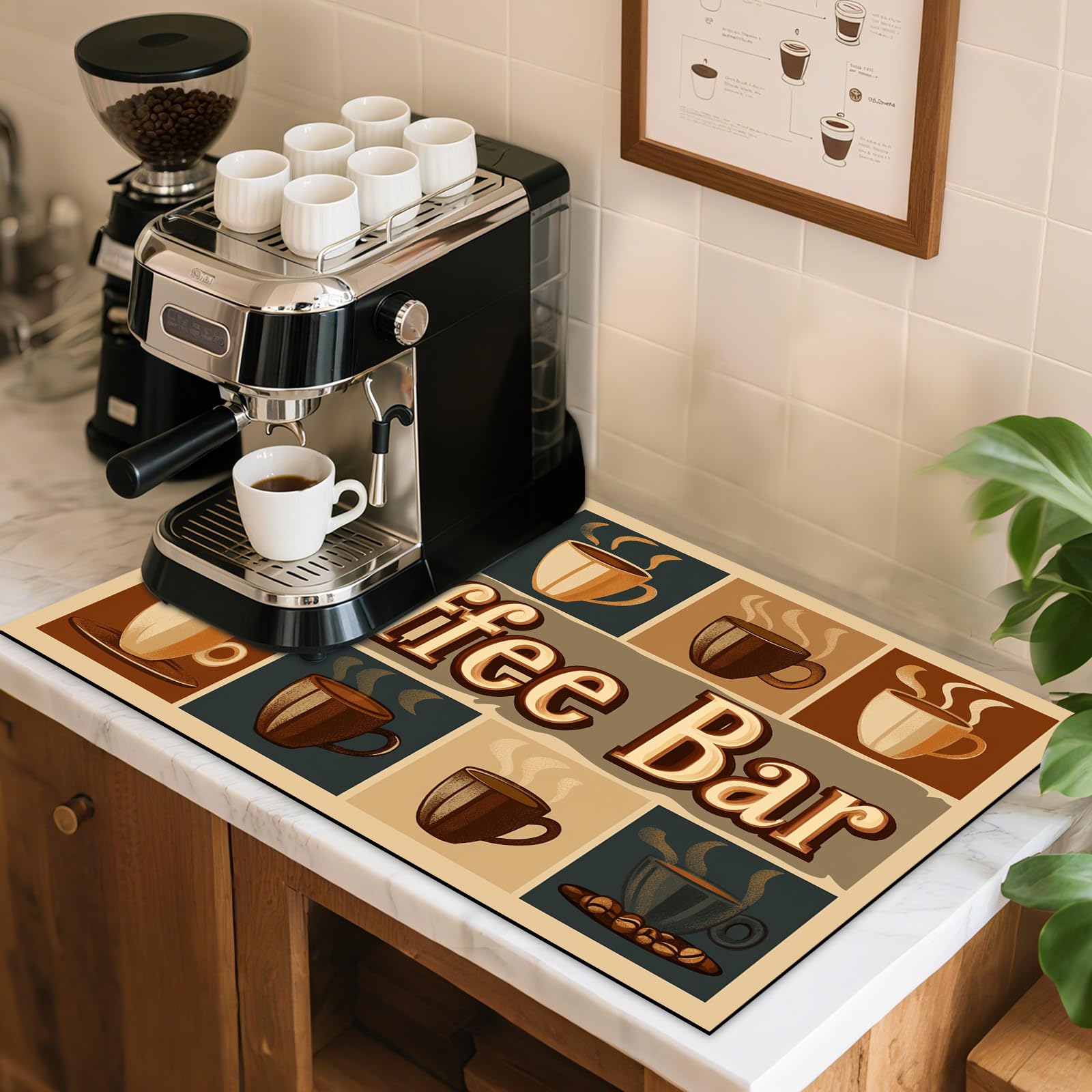 Dish Drying Mat for Kitchen Counter-Coffee 16" x 16", Coffee Bar-Retro