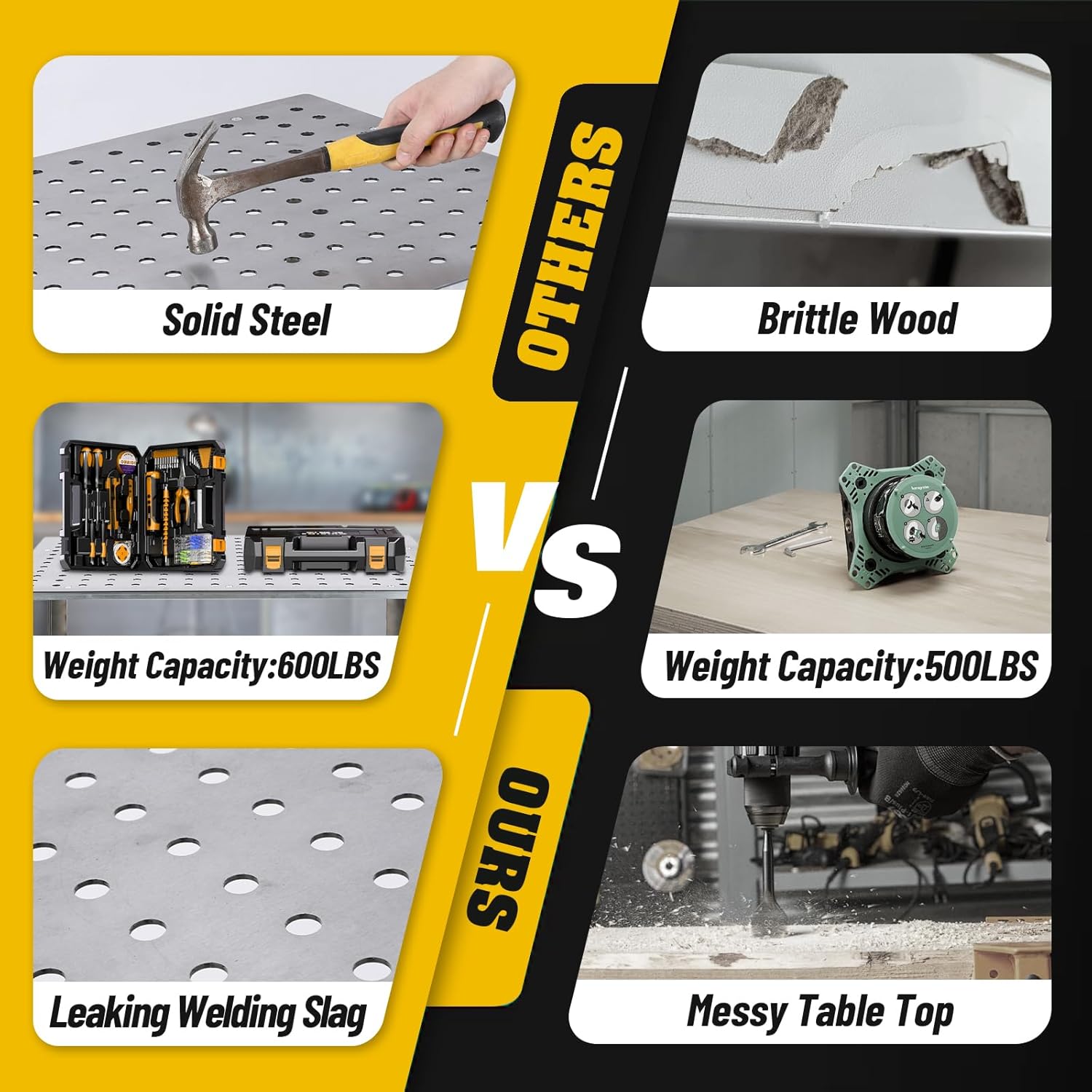 - **Quick Assembly**: Experience hassle-free setup with this portable welding table. It includes all necessary tools and clear instructions, allowing you to assemble your heavy-duty workbench and effortlessly, ready to take on any project.