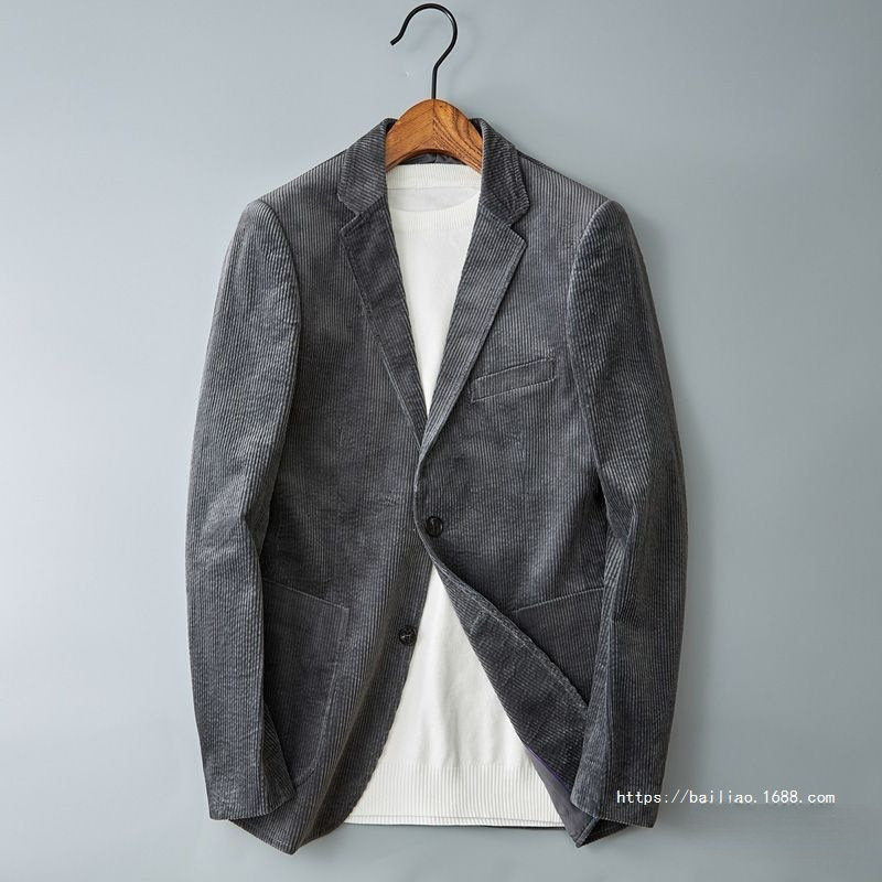 Mens Corduroy Suit Jacket Autumn Striped Retro Style Business Slim Casual Suit