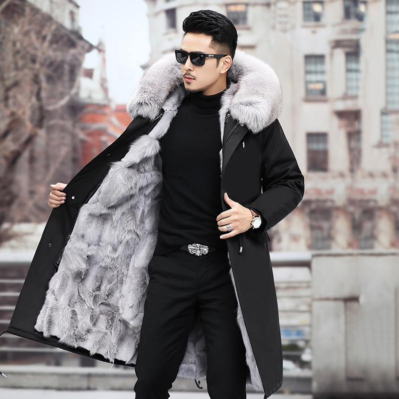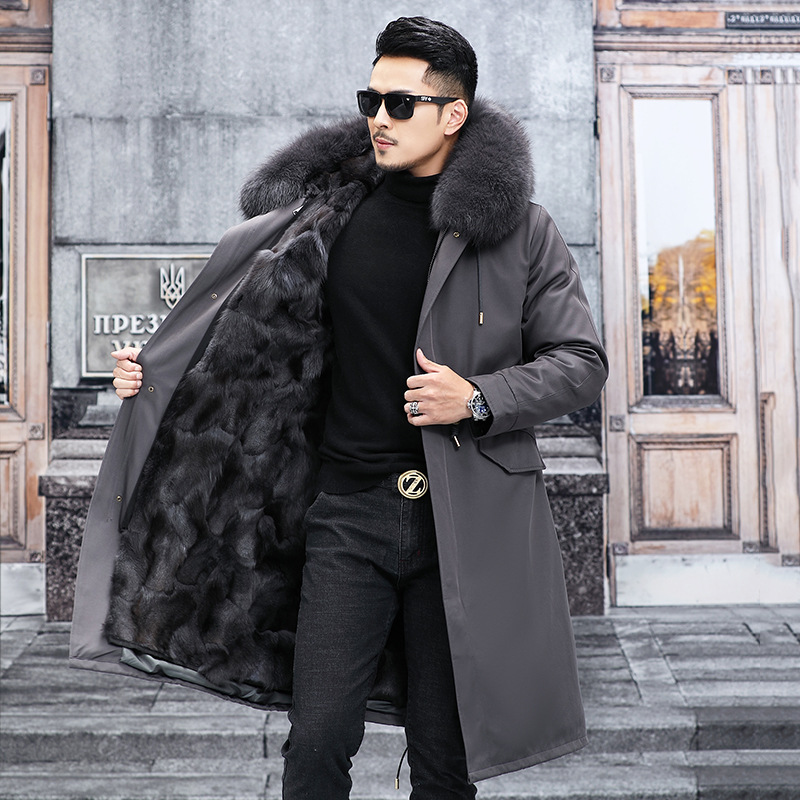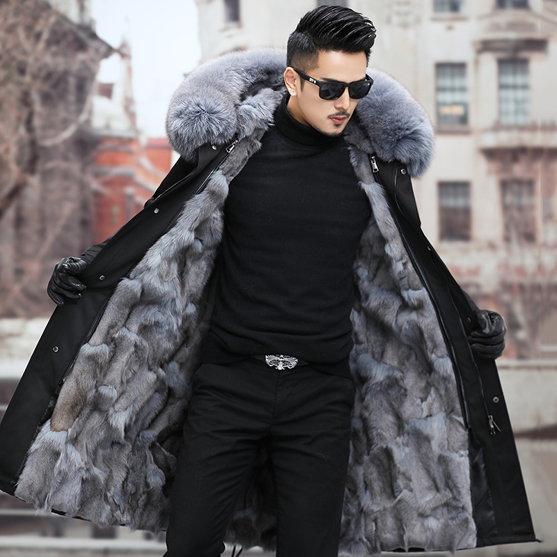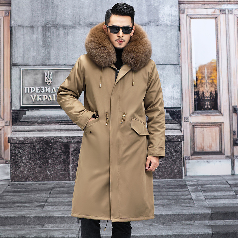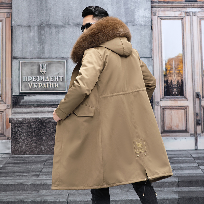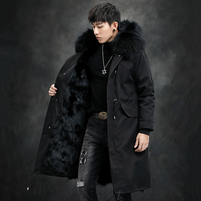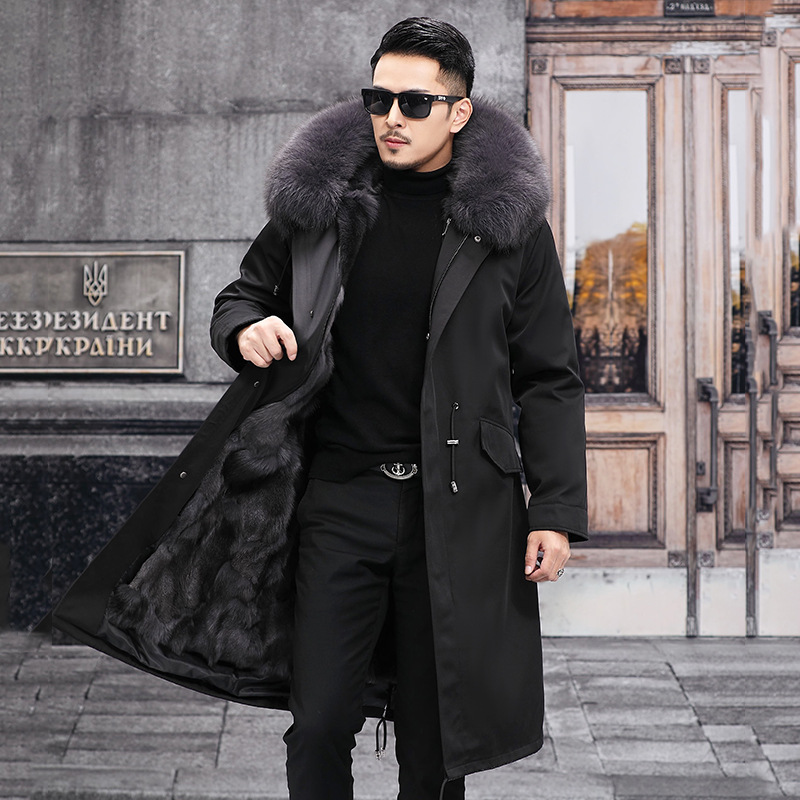 Men's Parka Coat Fox Fur Lining Coat Long Real Fox Fur Hooded Business Jackets