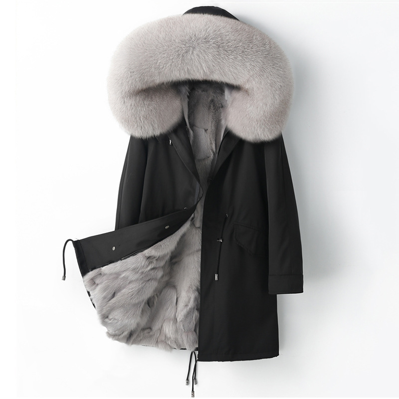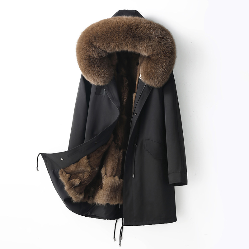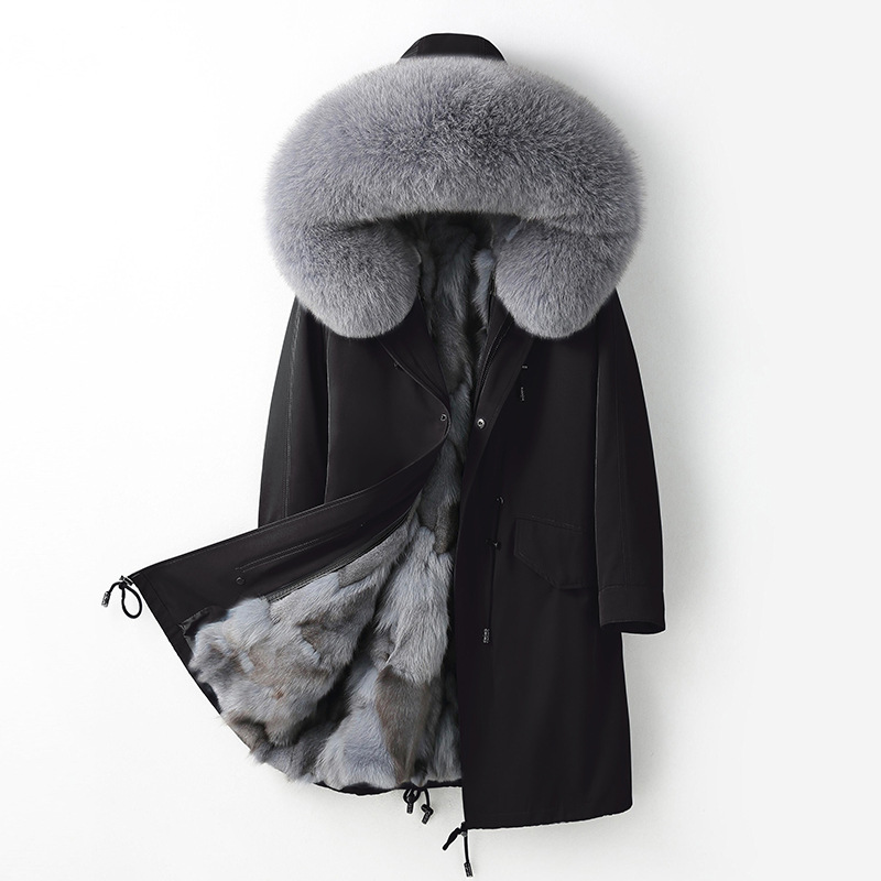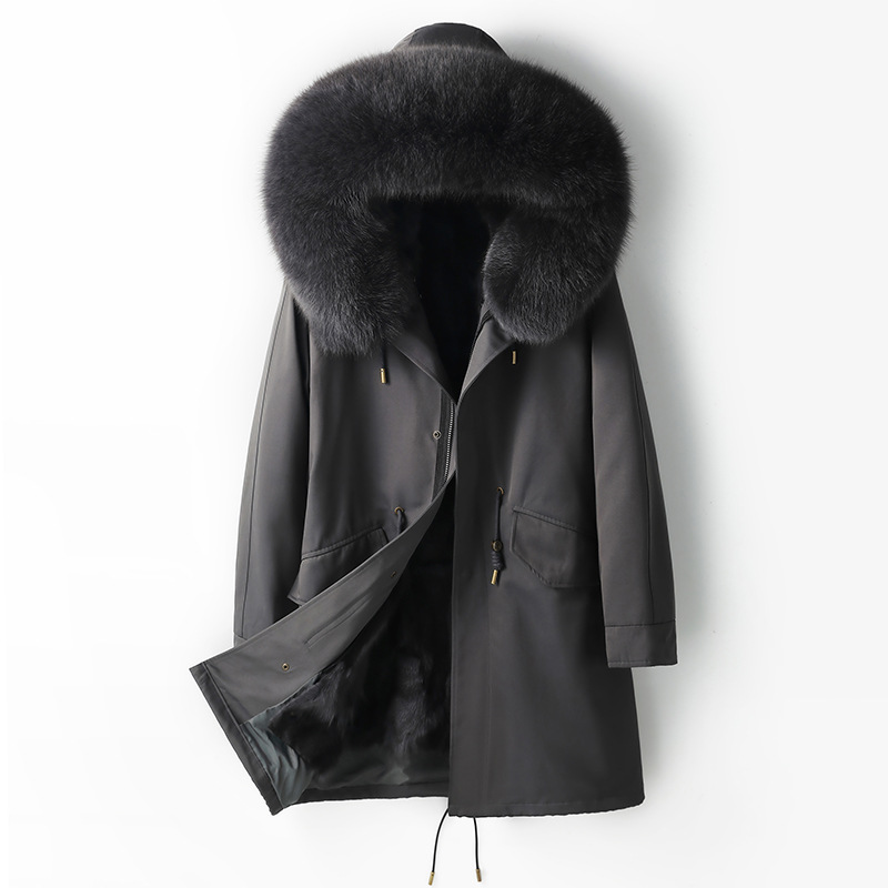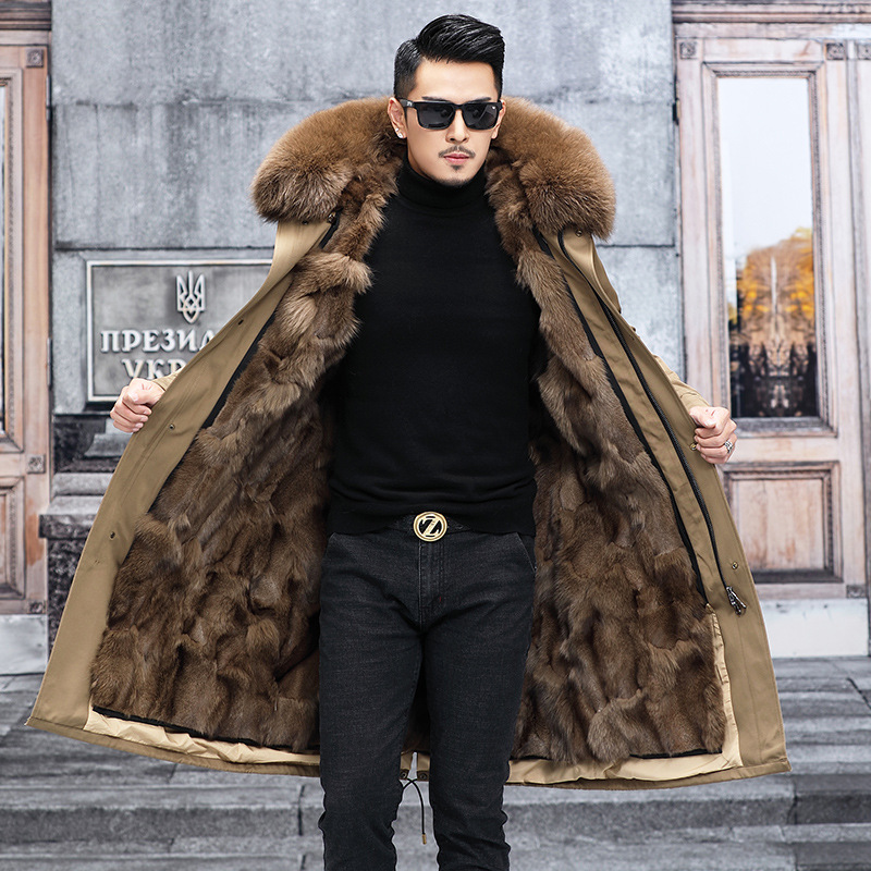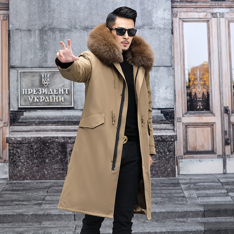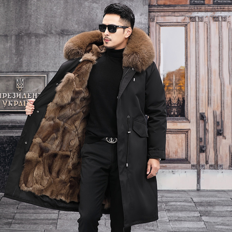 Men's Parka Coat Fox Fur Lining Coat Long Real Fox Fur Hooded Business Jackets