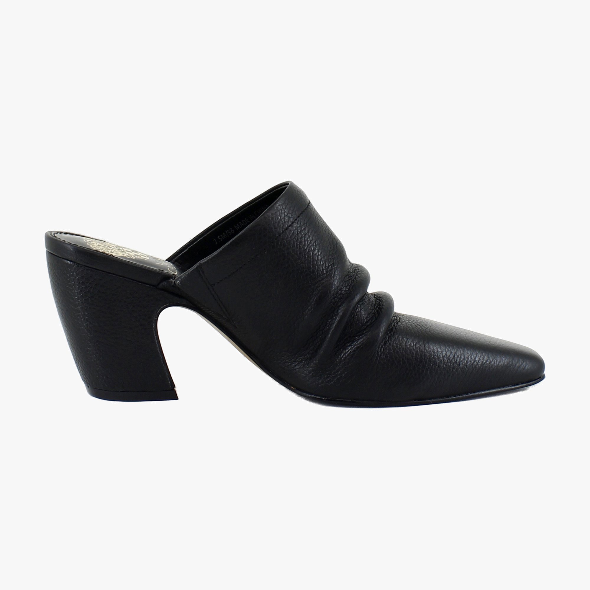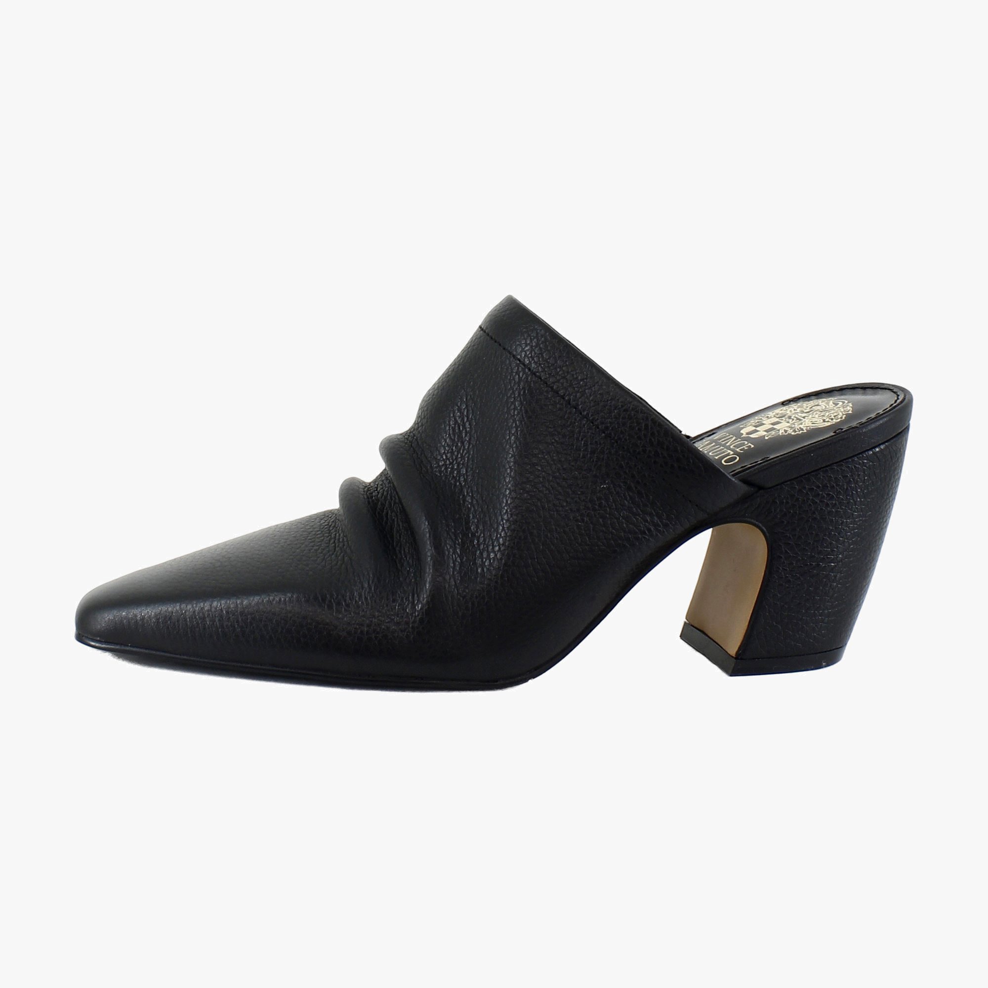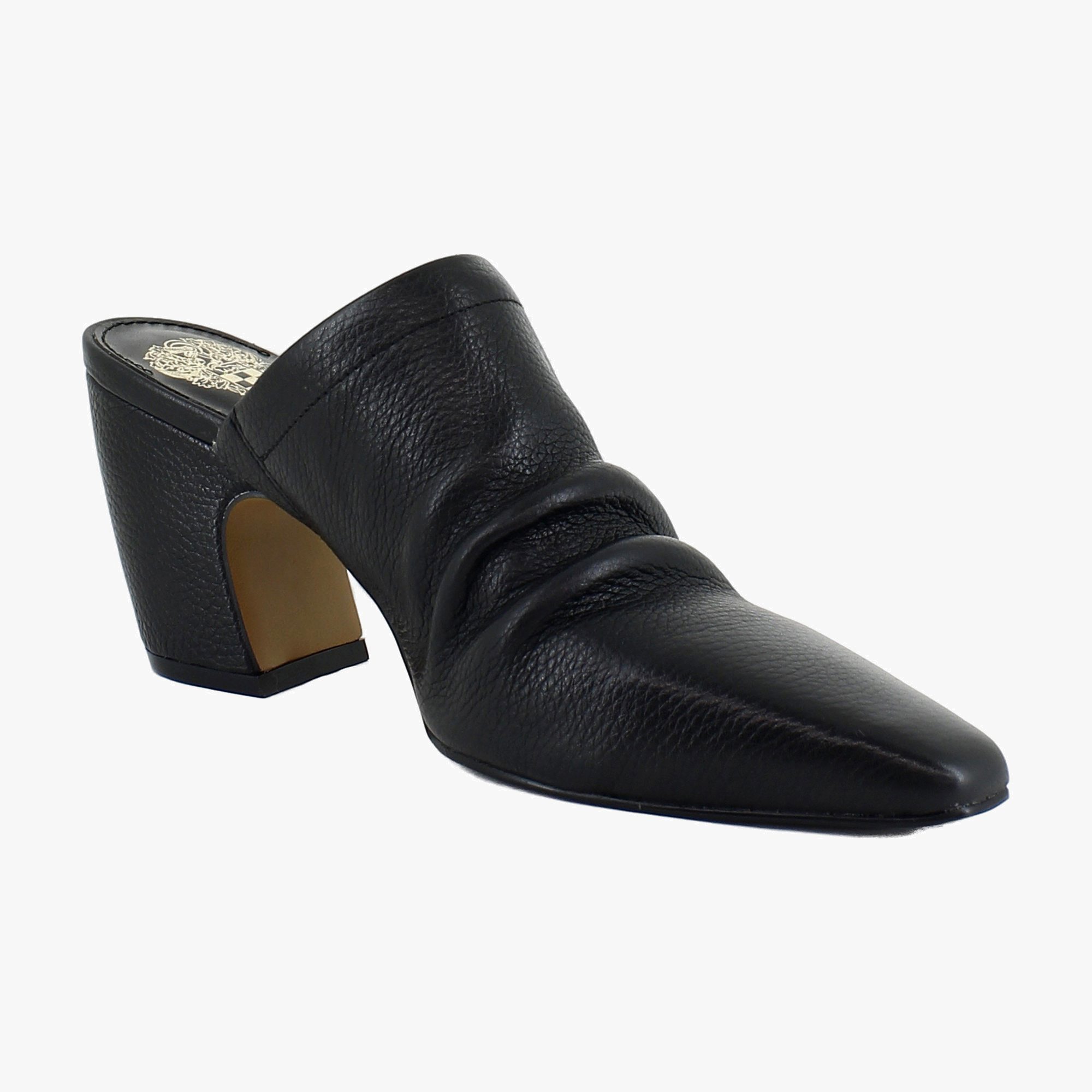 The Vince Camuto Carlie mule combines a sleek, slouched leather upper with a pointed toe for a modern look that effortlessly enhances any outfit. Its slanted block heel provides a sophisticated lift, while the cushioned insole ensures all-day comfort, making this shoe a must-have for the style-savvy.