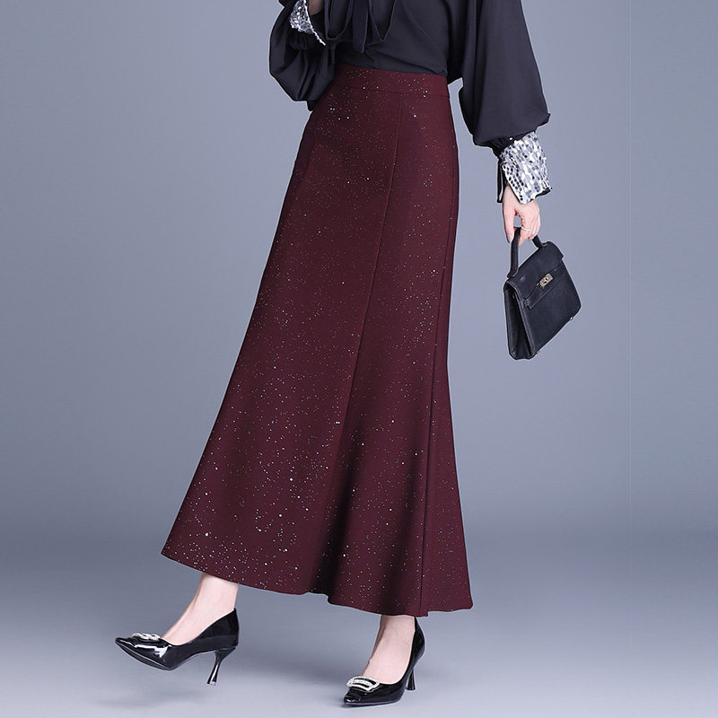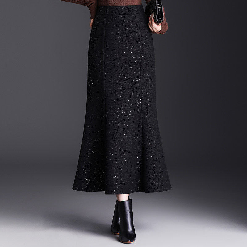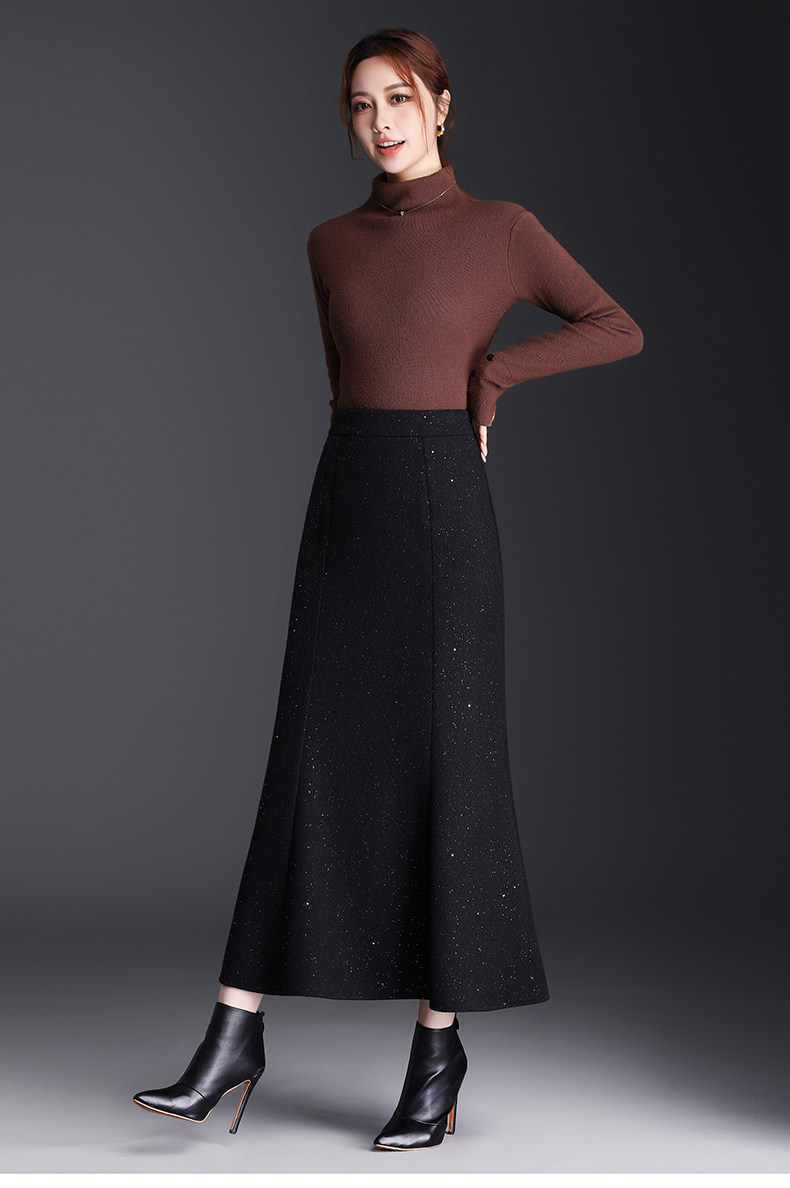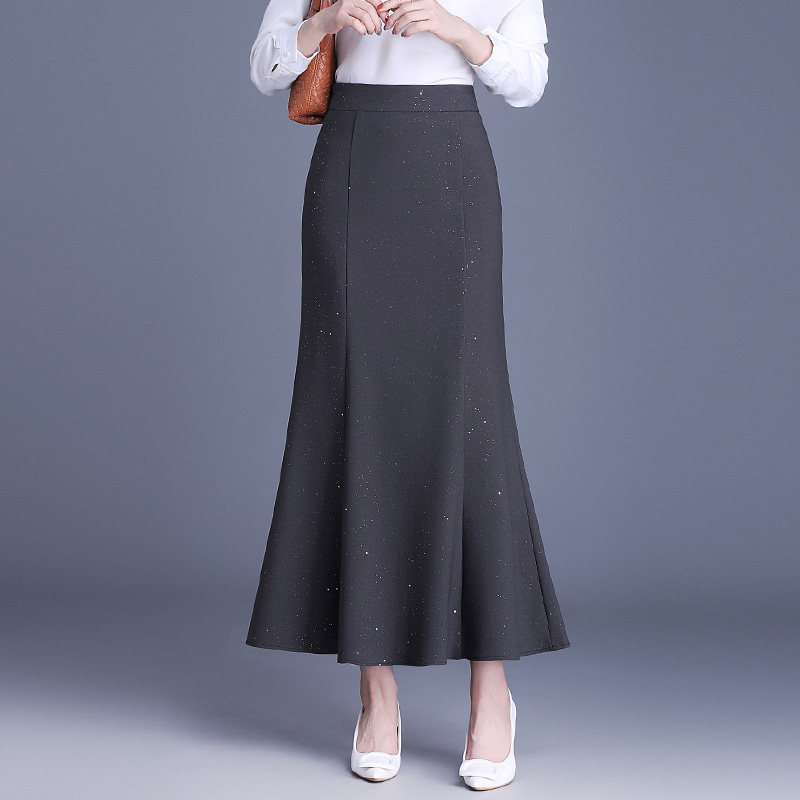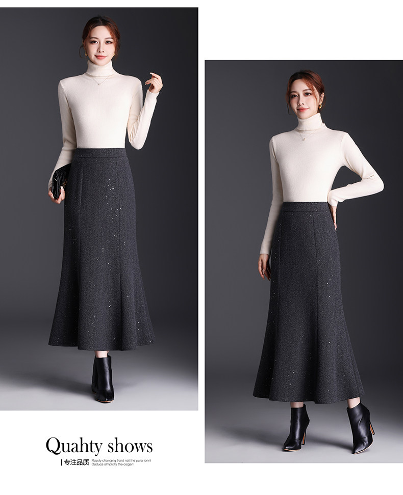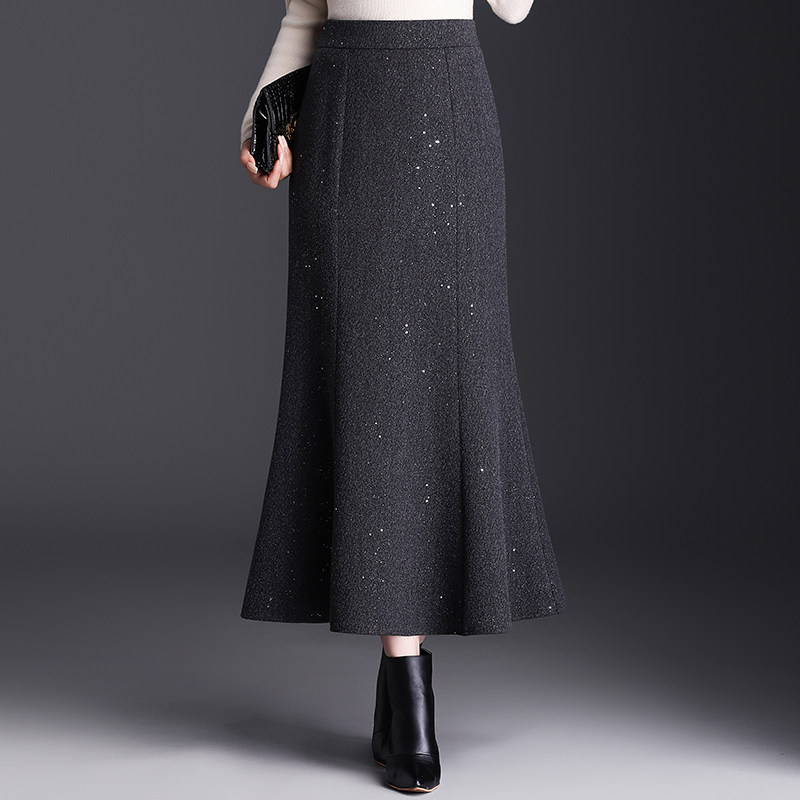 Winter Fish Tail Skirt Long Wool Skirt Gray Womens Cashmere Warm Fishtail Skirt