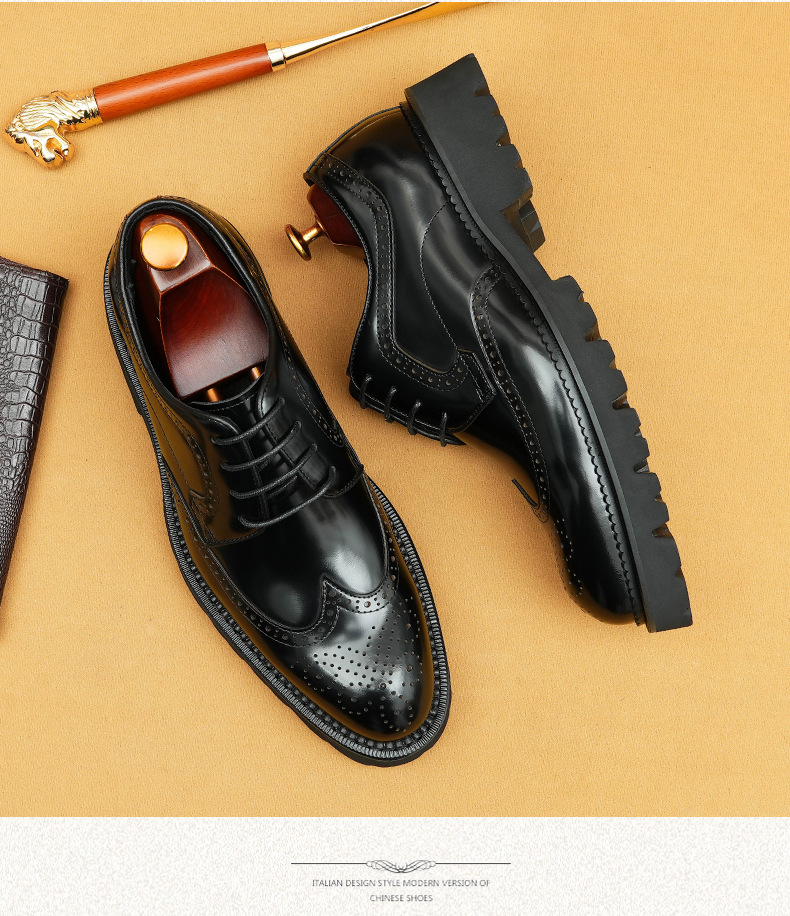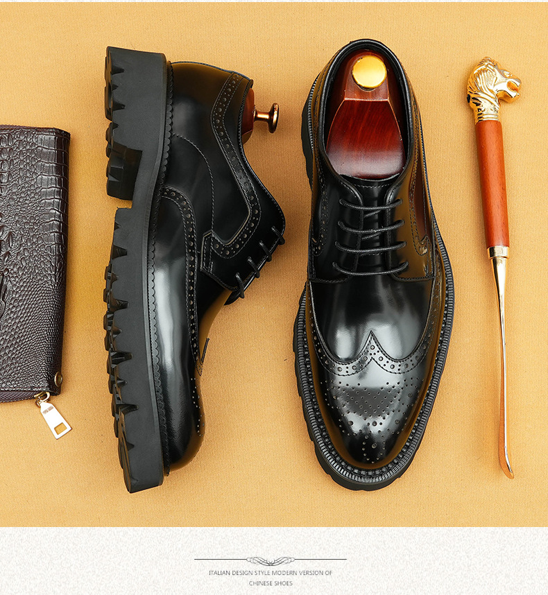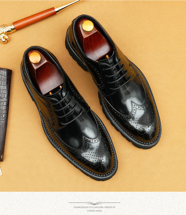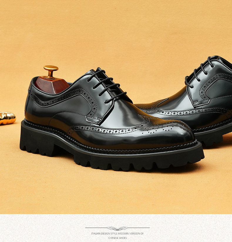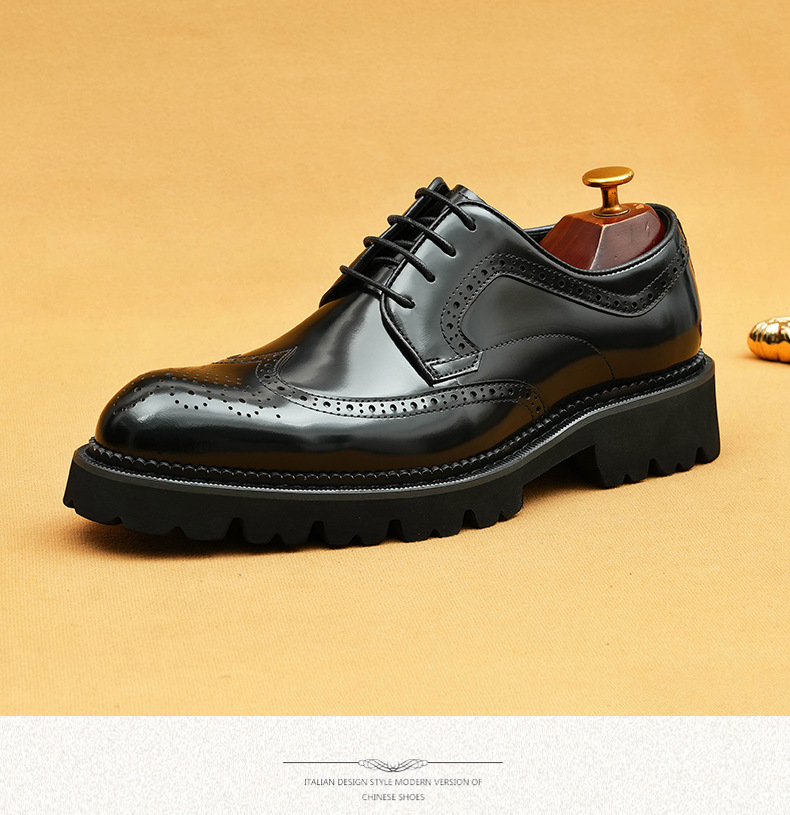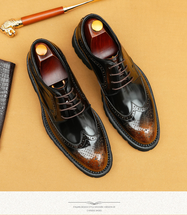 British Mens Patent Leather Shoes Carved Brogue Pointed Toe High Heels Shoes Sz