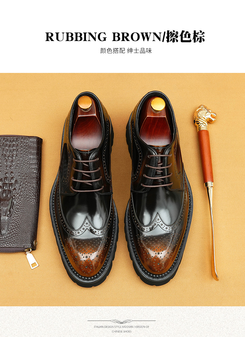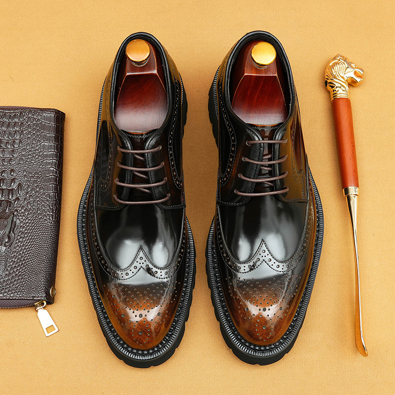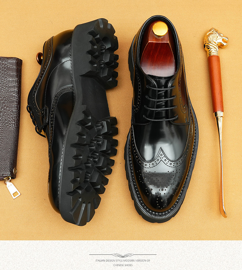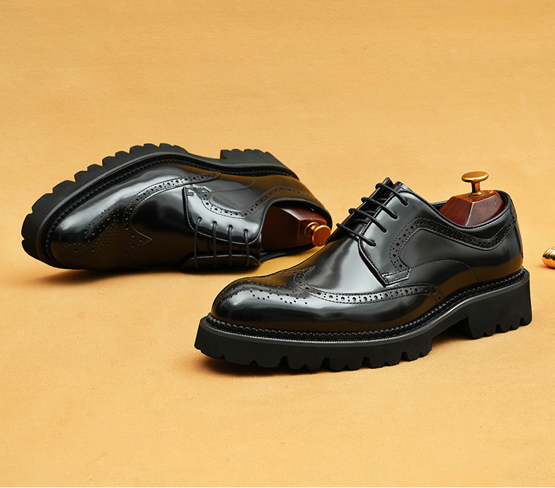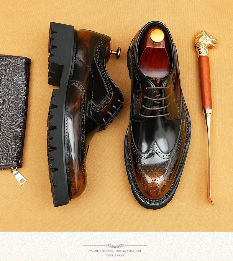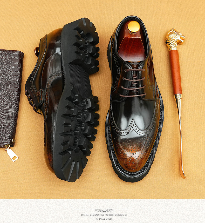 British Mens Patent Leather Shoes Carved Brogue Pointed Toe High Heels Shoes Sz
