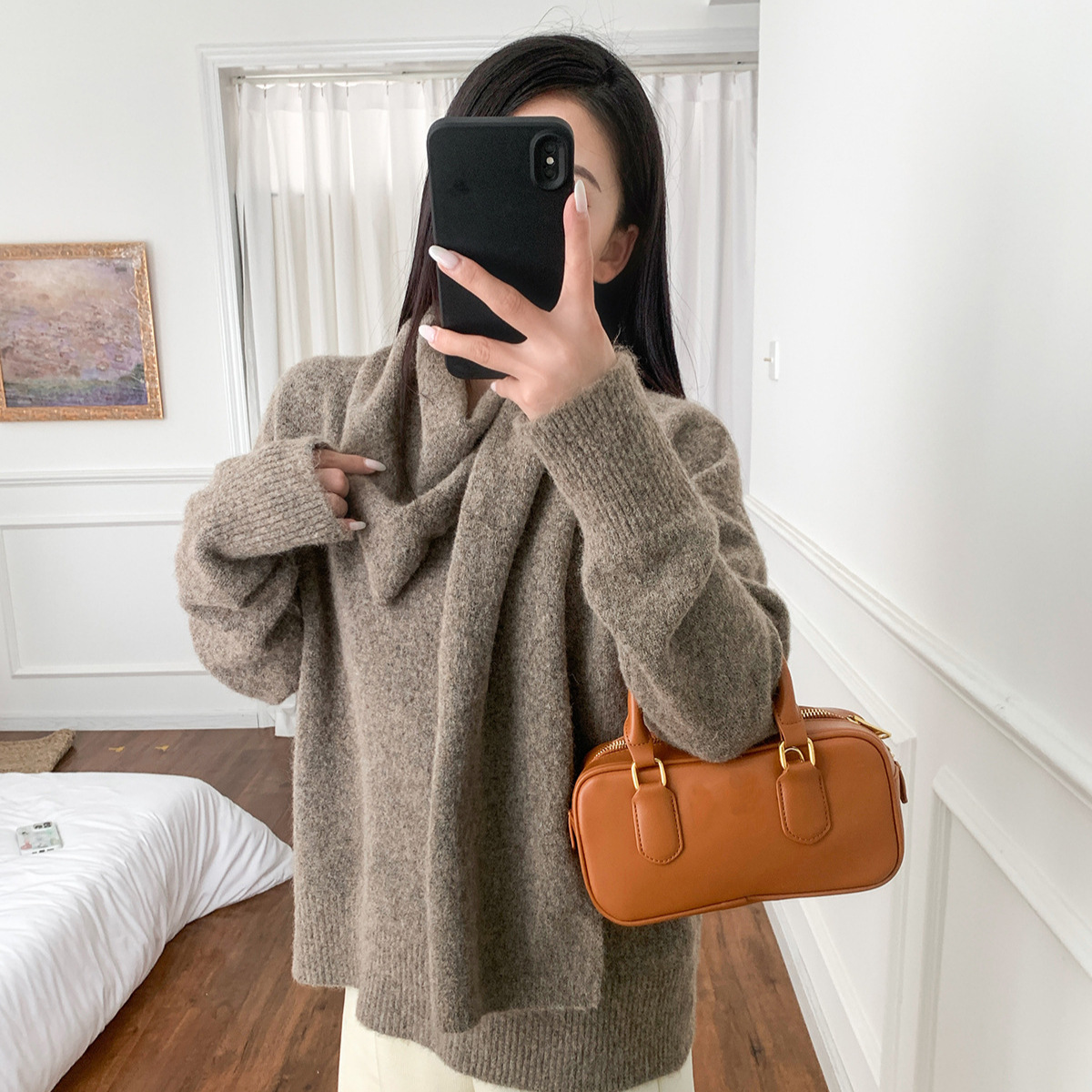 Winter New Soft Scarf Knitted Sweater Thicken Wool Pullover Womens Warm Sweater
