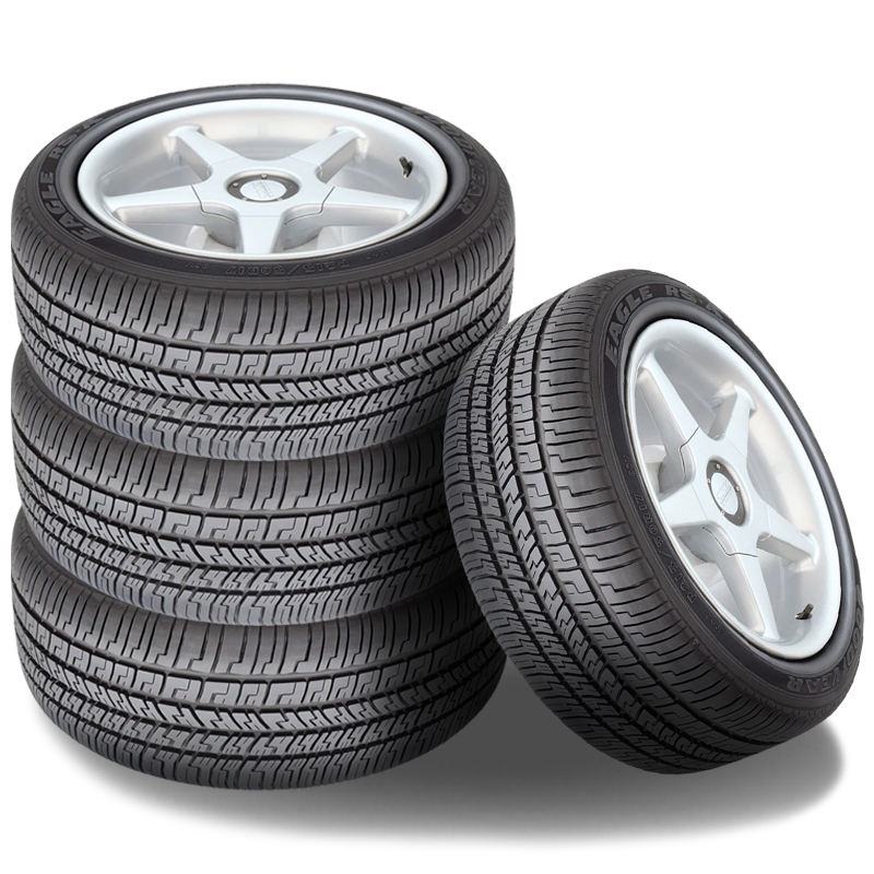 The Eagle RS-A is an all-season tire that is designed for use on sedans and offers drivers traction in dry, wet, and snowy conditions. Drivers need a tire that can perform in any weather condition. A unique tread design allows for enhanced traction, while also offering drivers a quiet ride. It covers much of the performance market with H, V, and W speed ratings and rim diameters from 15 to 20 inches. The aggressive tread design of the Eagle RS-A hides a great deal of advanced technology in its rubber. This includes a proprietary new rubber compound that offers durability and traction in every kind of weather. Solid shoulder blocks keep you firmly planted at high speeds and help to stabilize the tire when turning, stopping, and accelerating.