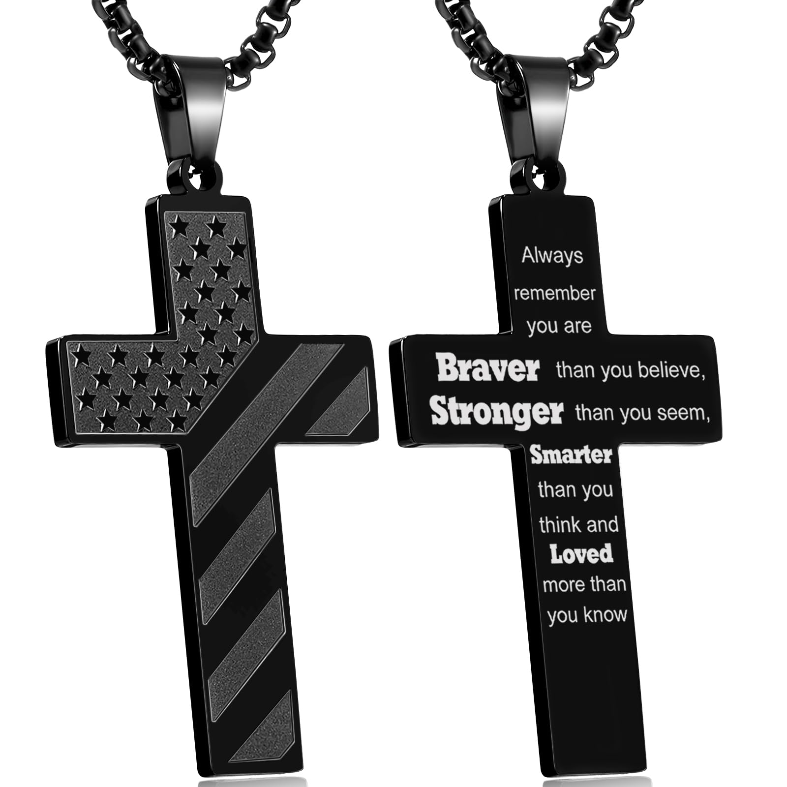 Black American Flag Cross Necklace for Men Bible 24 inches,