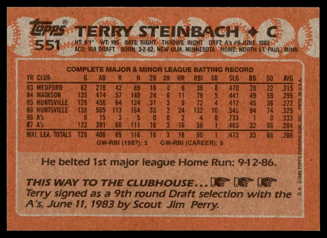 1988 Topps Terry Steinbach Oakland Athletics #551