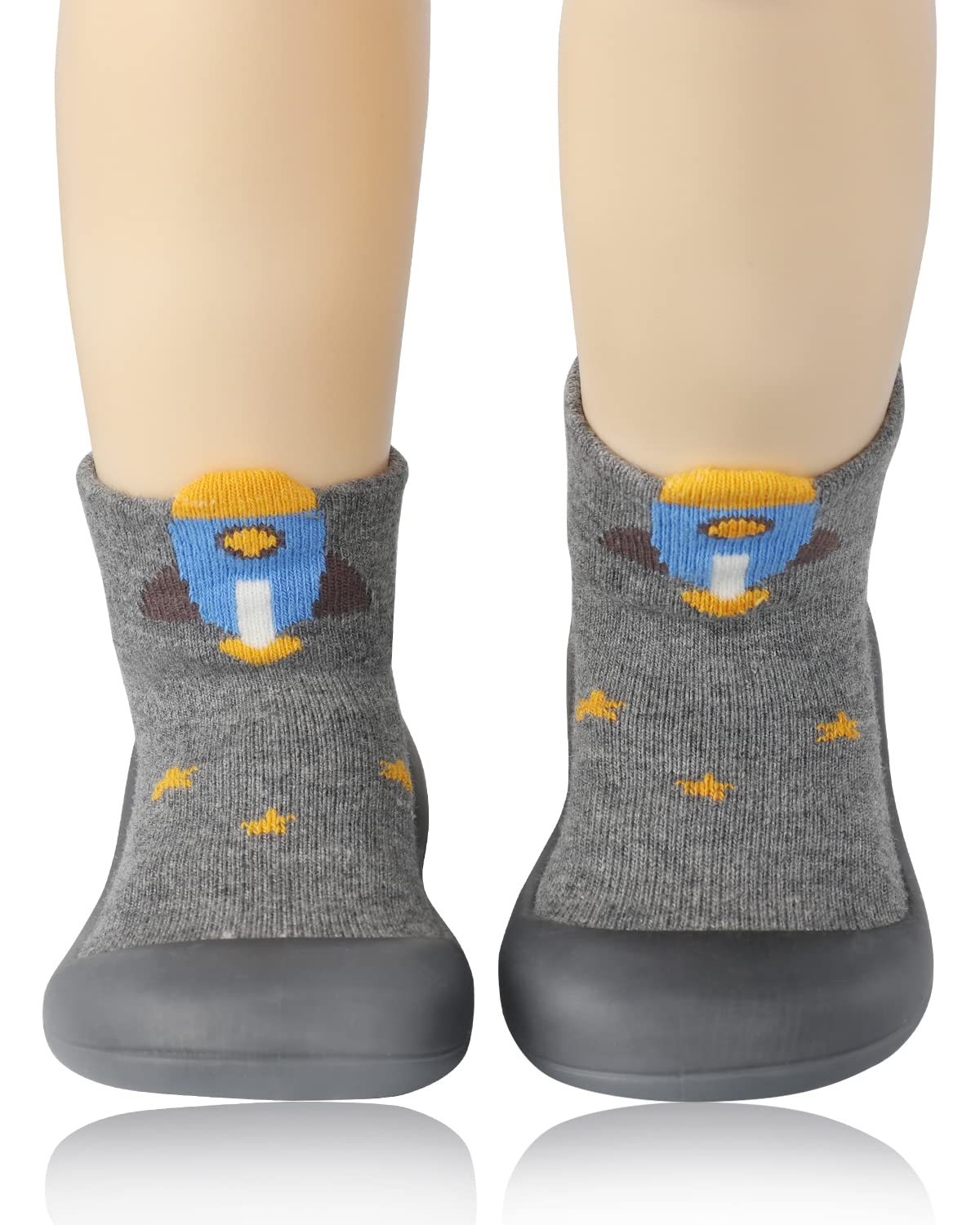 【Soft Material Upper】:Baby sock shoes is made of sock-like stretchy material with cute rocket print, hugs baby foot to keep them comfortable and flexible. The toddler baby socks shoes are lightweight, skin-friendly and breathable, won't irritate your baby's delicate skin, keep baby feel happiness and safety.