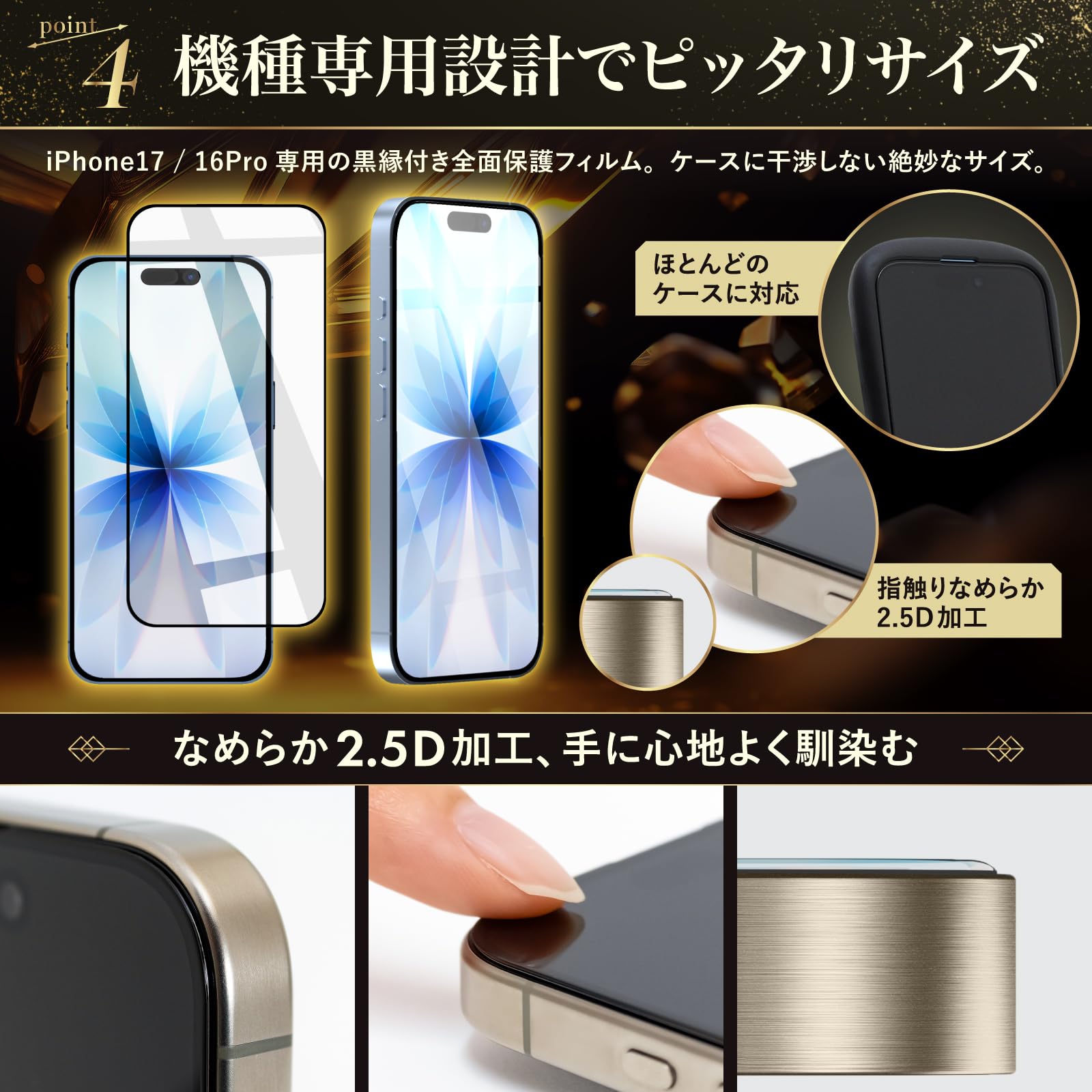 [Compatible Models] Compatible with iPhone 17 / 16 Pro. [AR Type] AR (Anti-Reflection) is a glossy film that prioritizes high transparency. Even though regular glossy clear films are transparent, they can appear slightly whitish due to light reflection. AR films have a structure that makes it difficult for light reflection to reach the eye. As a result, the whitishness is suppressed compared to regular glossy clear films, and colors can be displayed more vividly. [Set Contents] Tempered glass film with guide frame for iPhone 17 / 16 Pro x 2, wiping kit x 2, bubble removal scraper x 1, instruction manual x 1